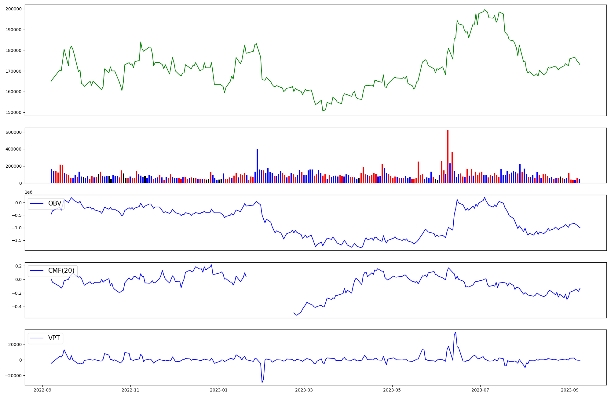 | OBV | CMF | VPT | |