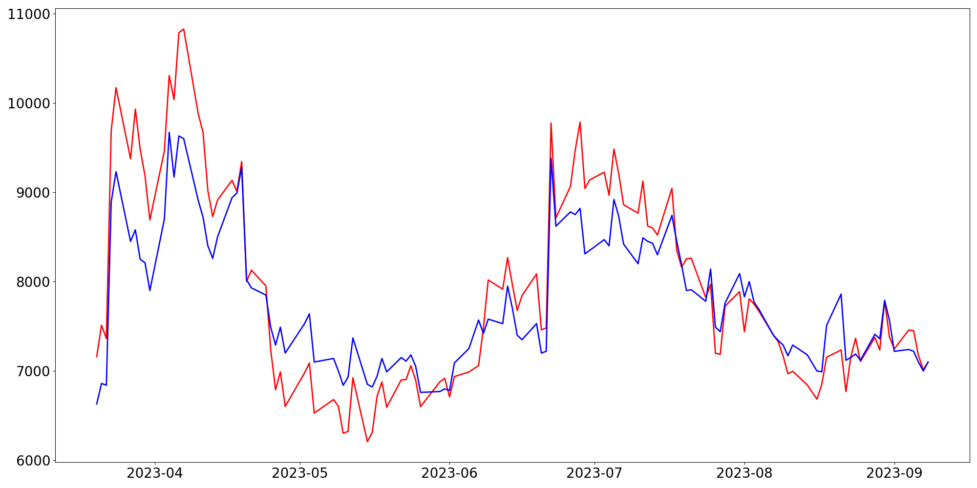 [ - : 실제값(종가) / - : 예측값(종가) ]