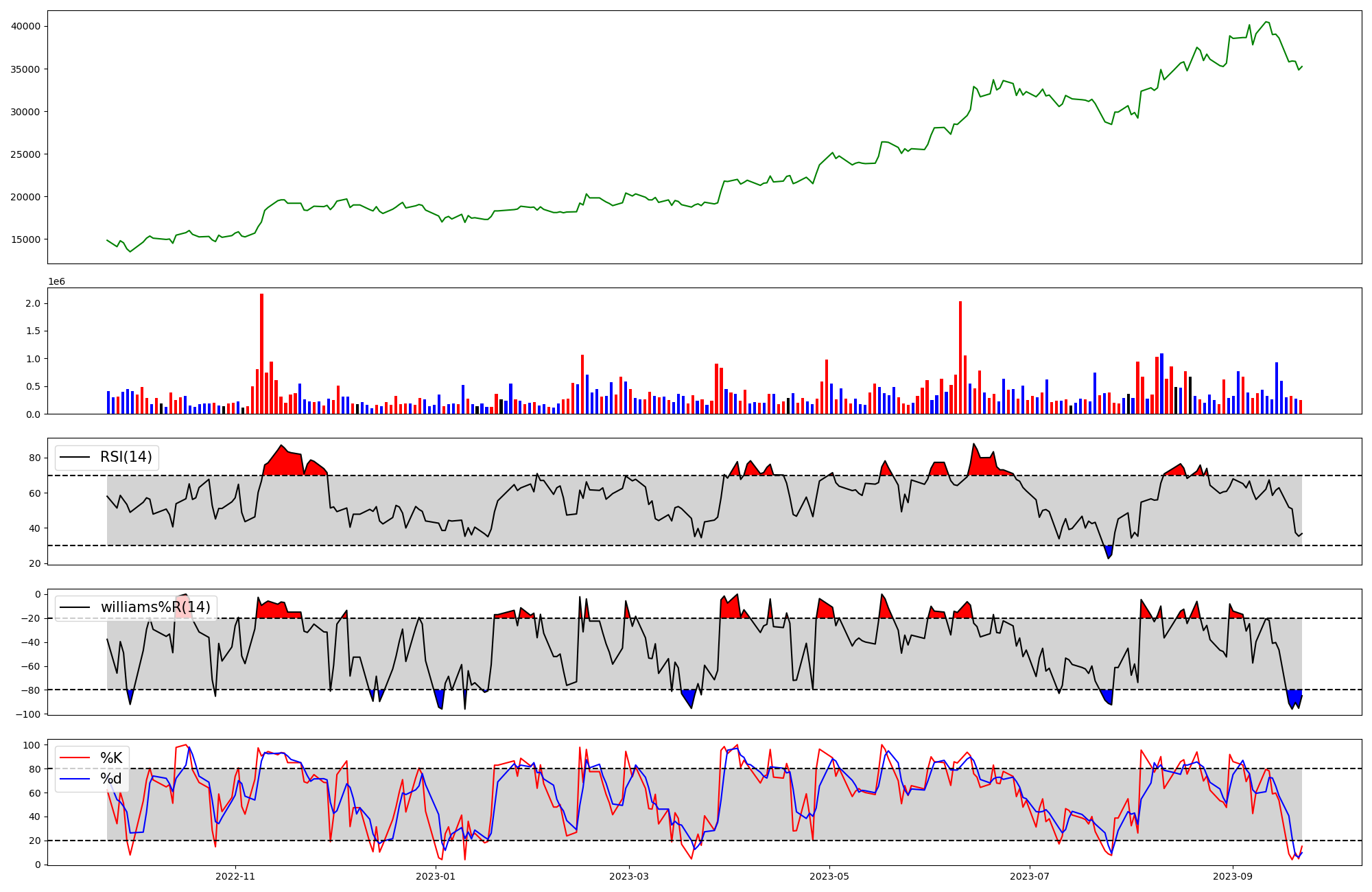 | RSI | Williams %R | stochastic(%K) | |
