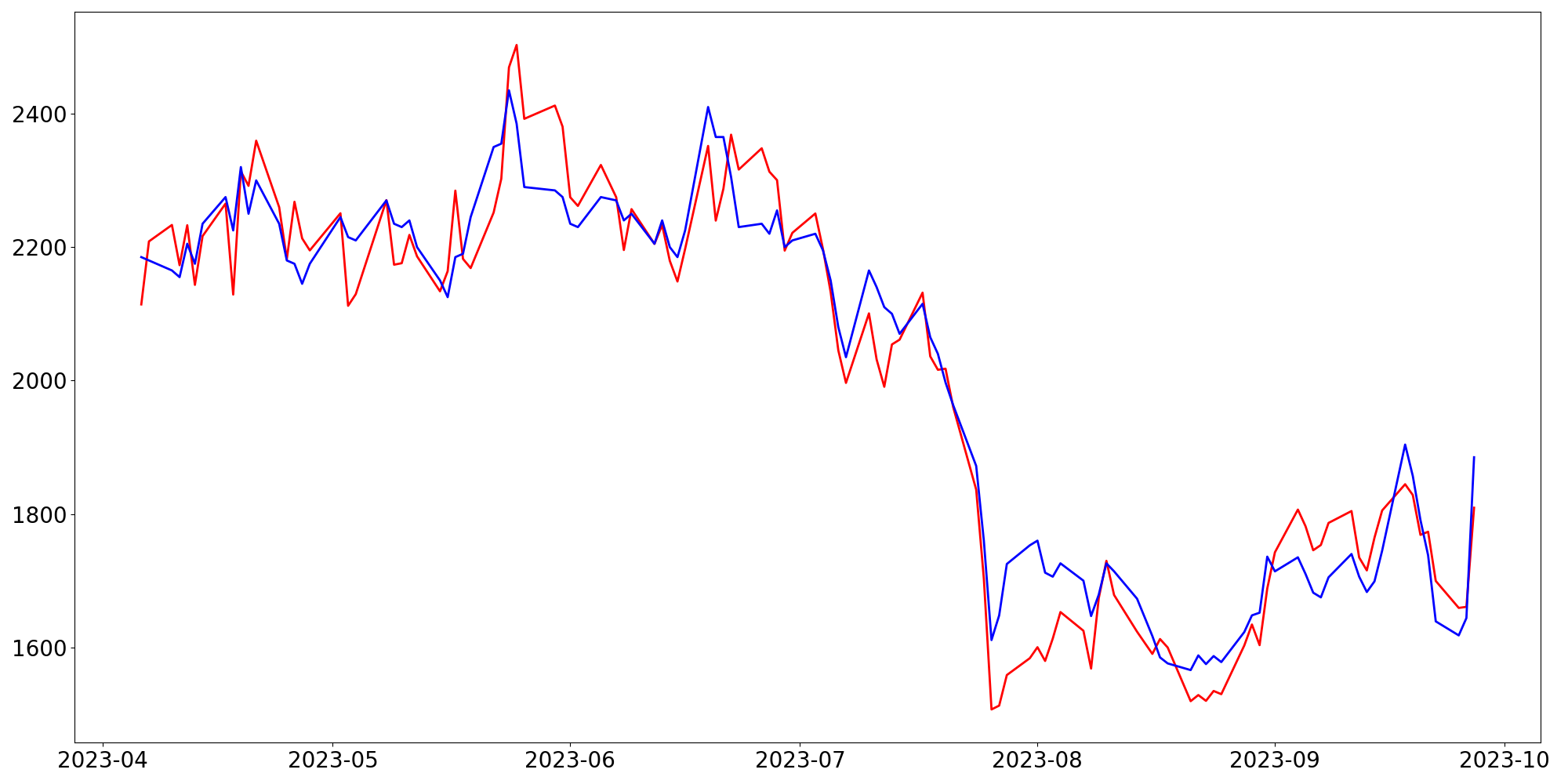 [ - : 실제값(종가) / - : 예측값(종가) ]