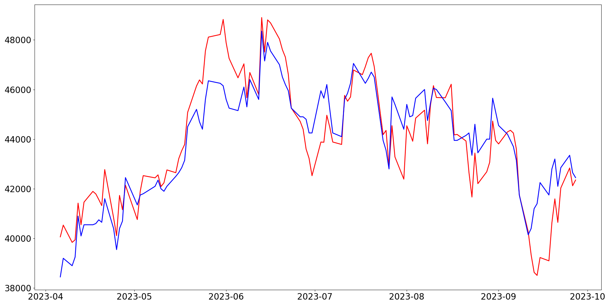 [ - : 실제값(종가) / - : 예측값(종가) ]