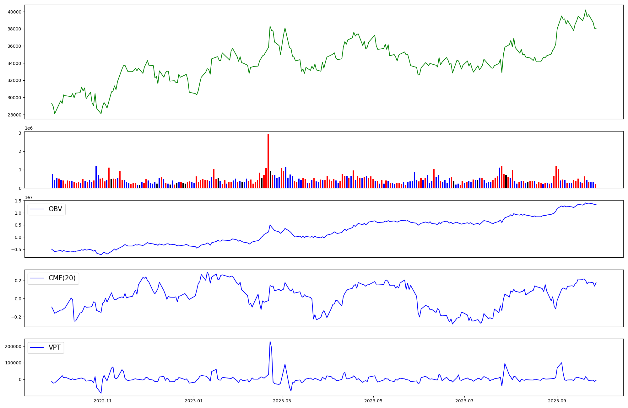 | OBV | CMF | VPT | |