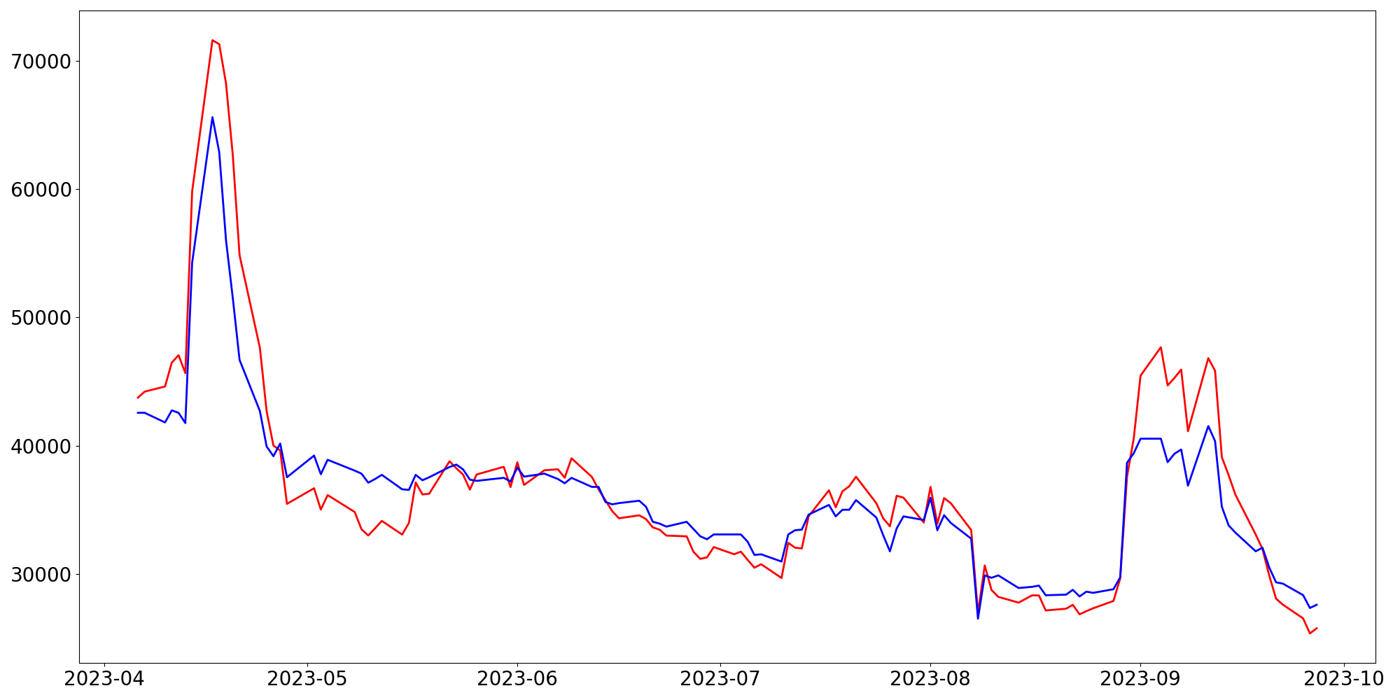 [ - : 실제값(종가) / - : 예측값(종가) ]