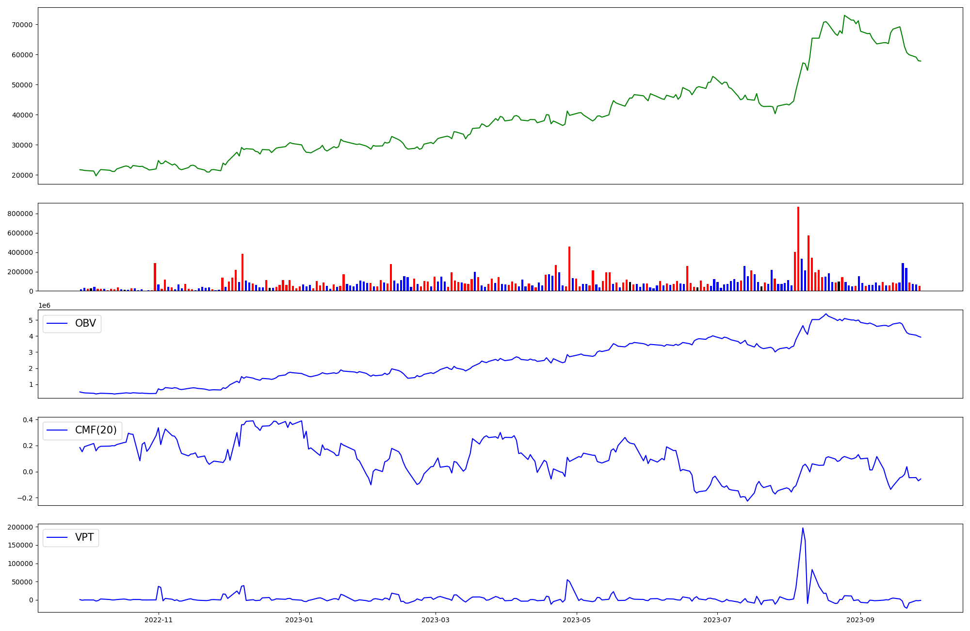 | OBV | CMF | VPT | |