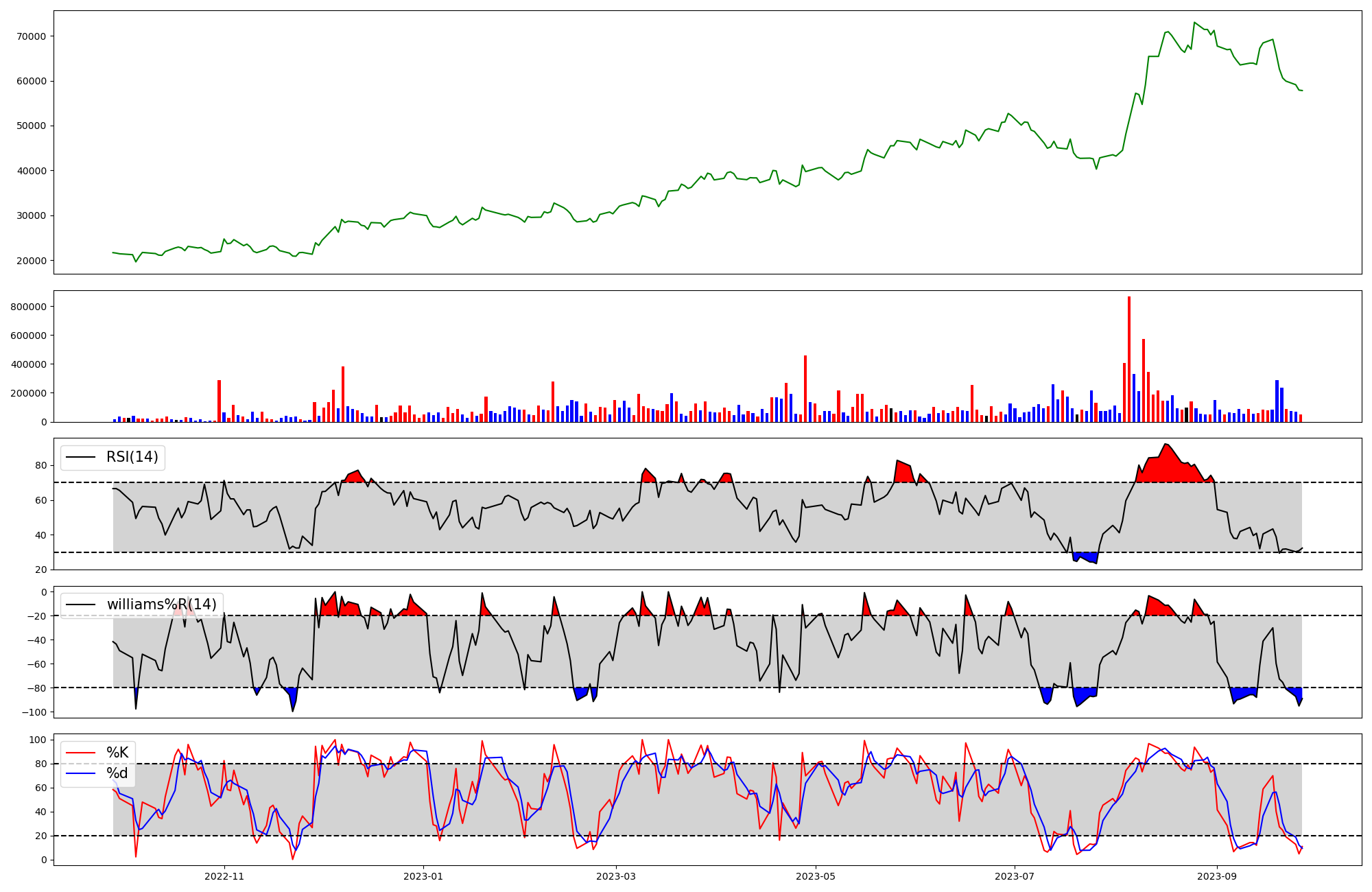 | RSI | Williams %R | stochastic(%K) | |