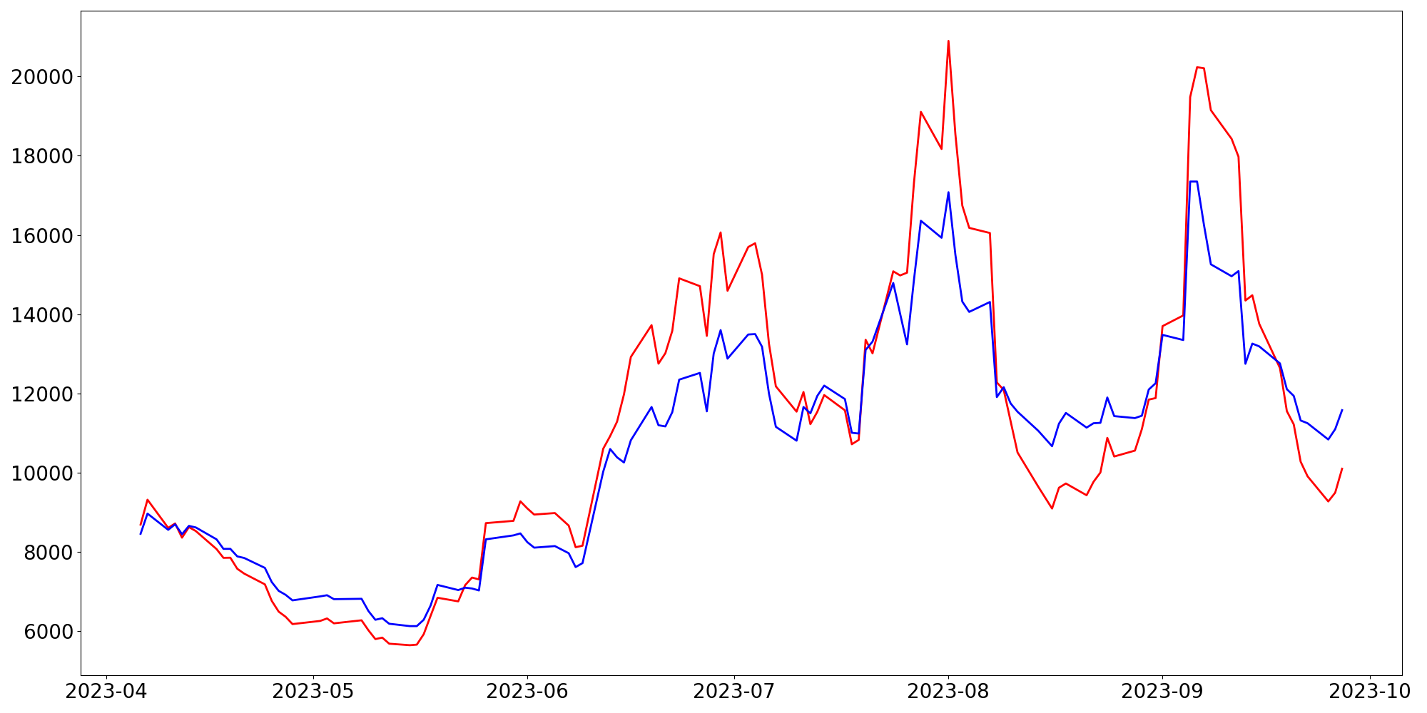[ - : 실제값(종가) / - : 예측값(종가) ]