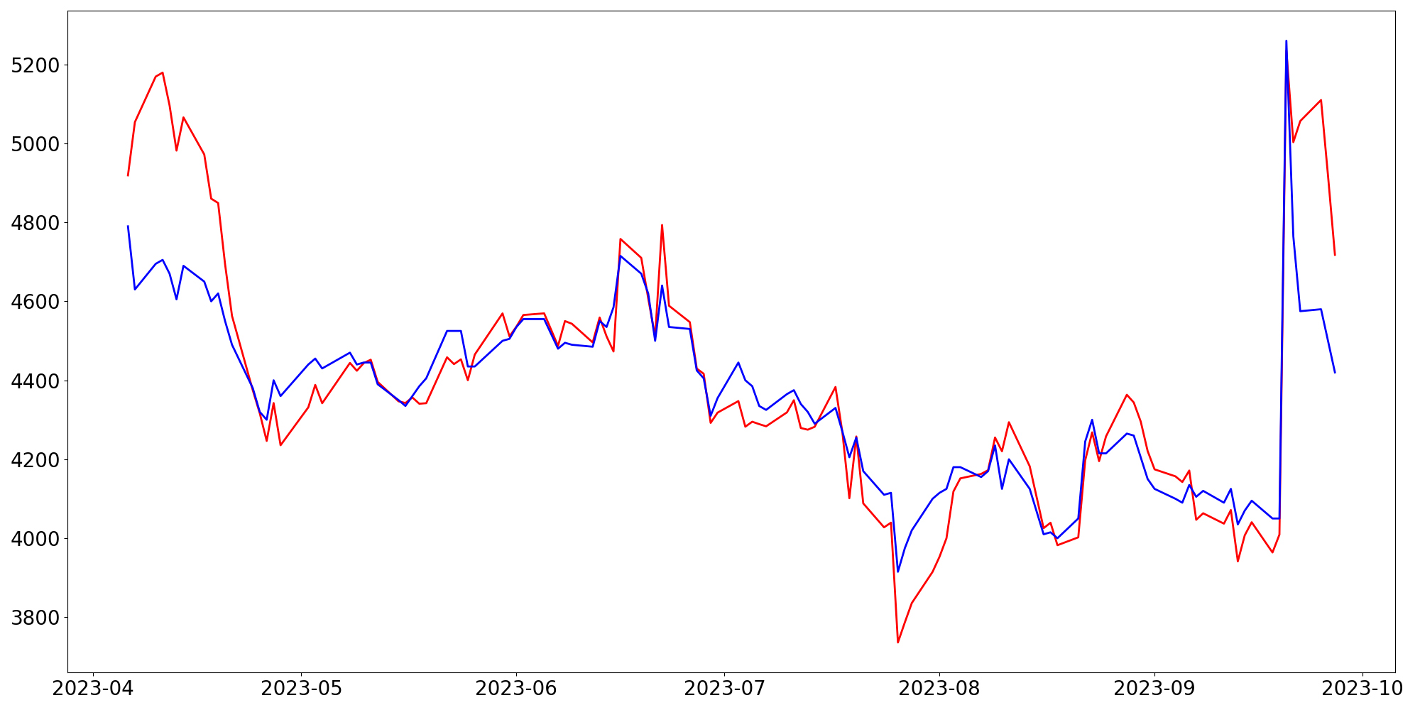 [ - : 실제값(종가) / - : 예측값(종가) ]
