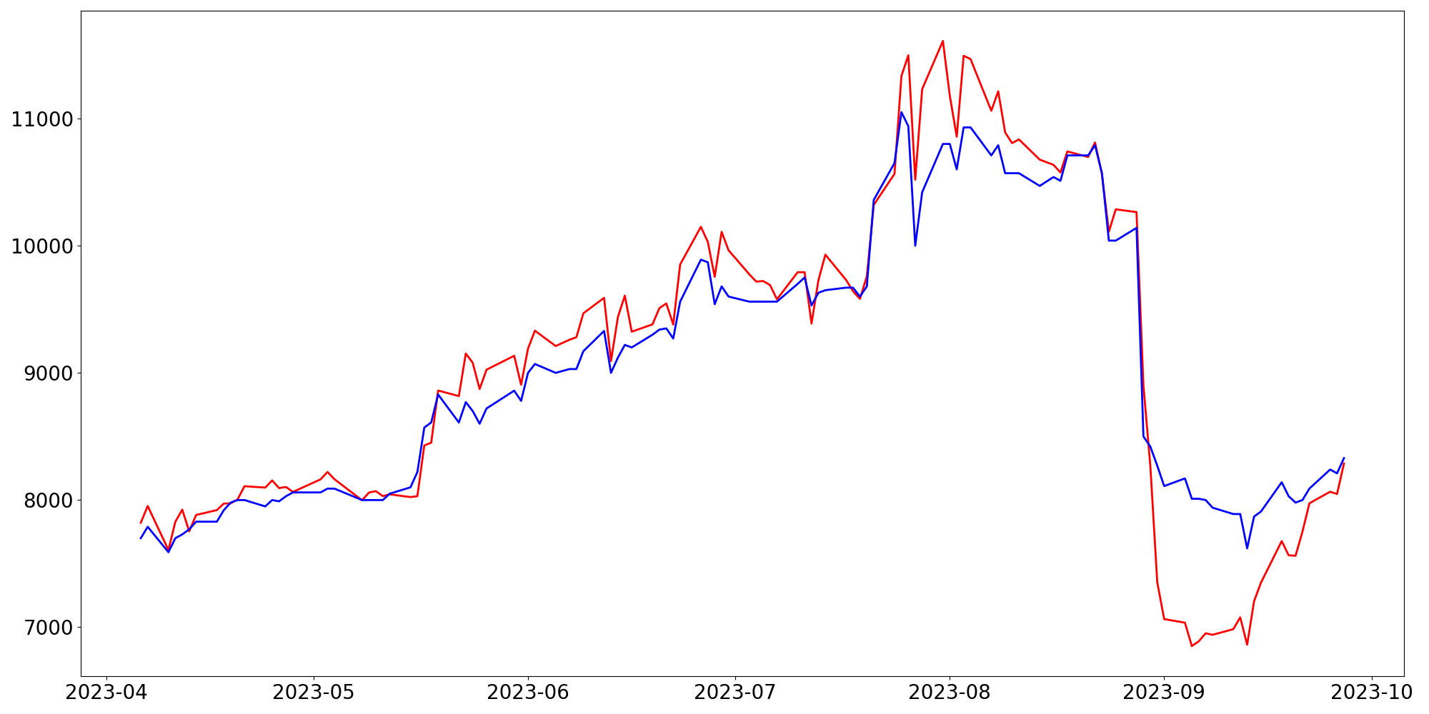 [ - : 실제값(종가) / - : 예측값(종가) ]