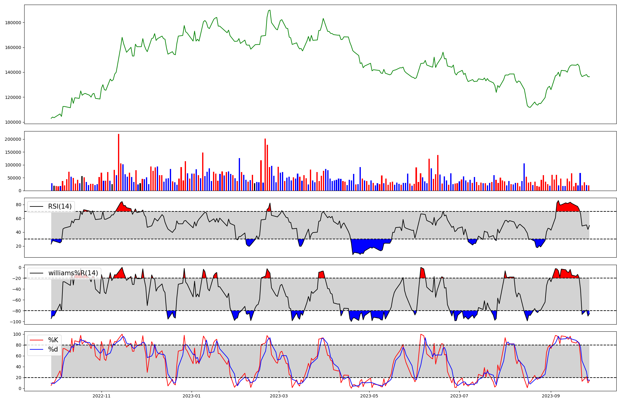 | RSI | Williams %R | stochastic(%K) | |