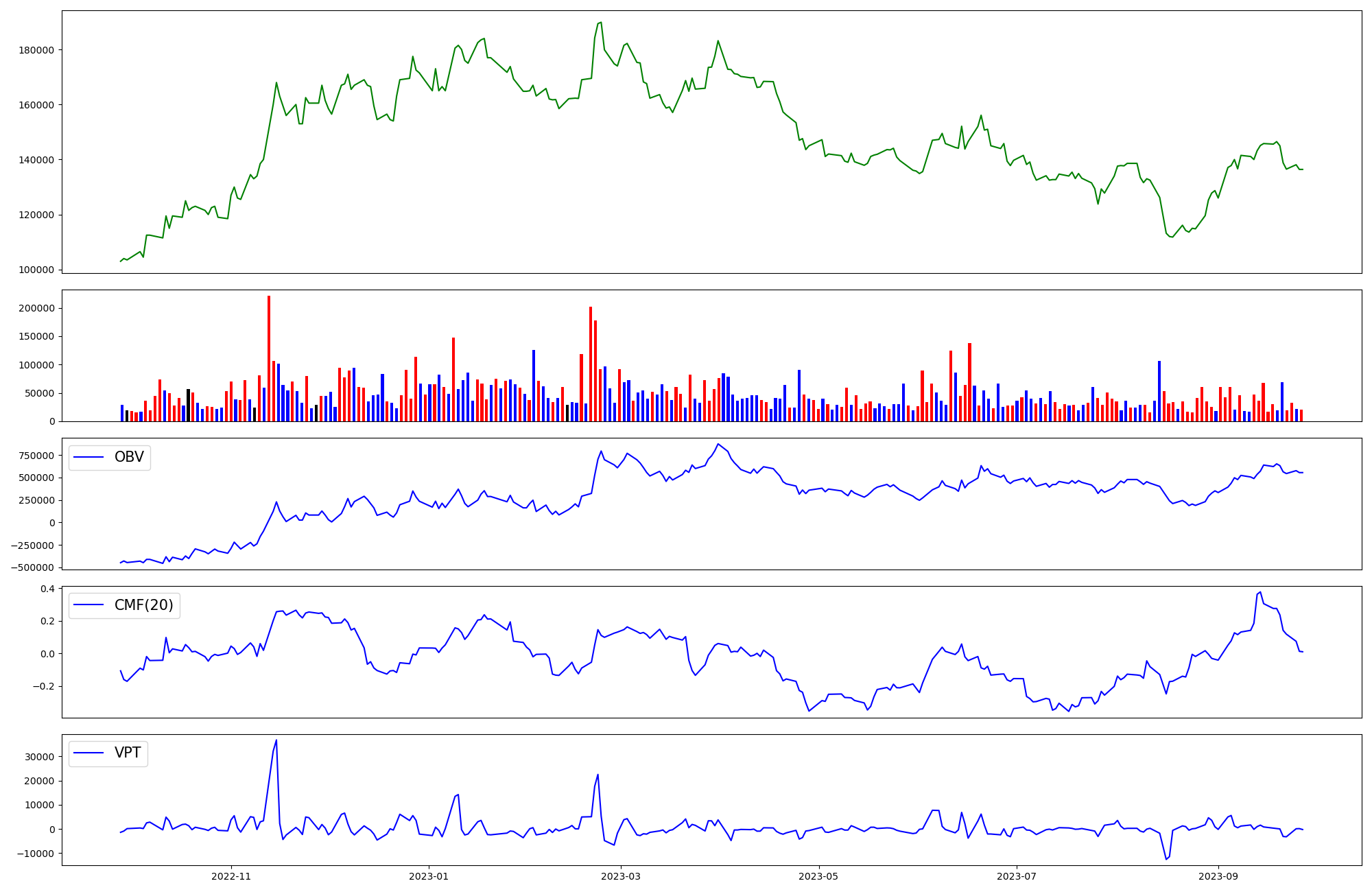 | OBV | CMF | VPT | |
