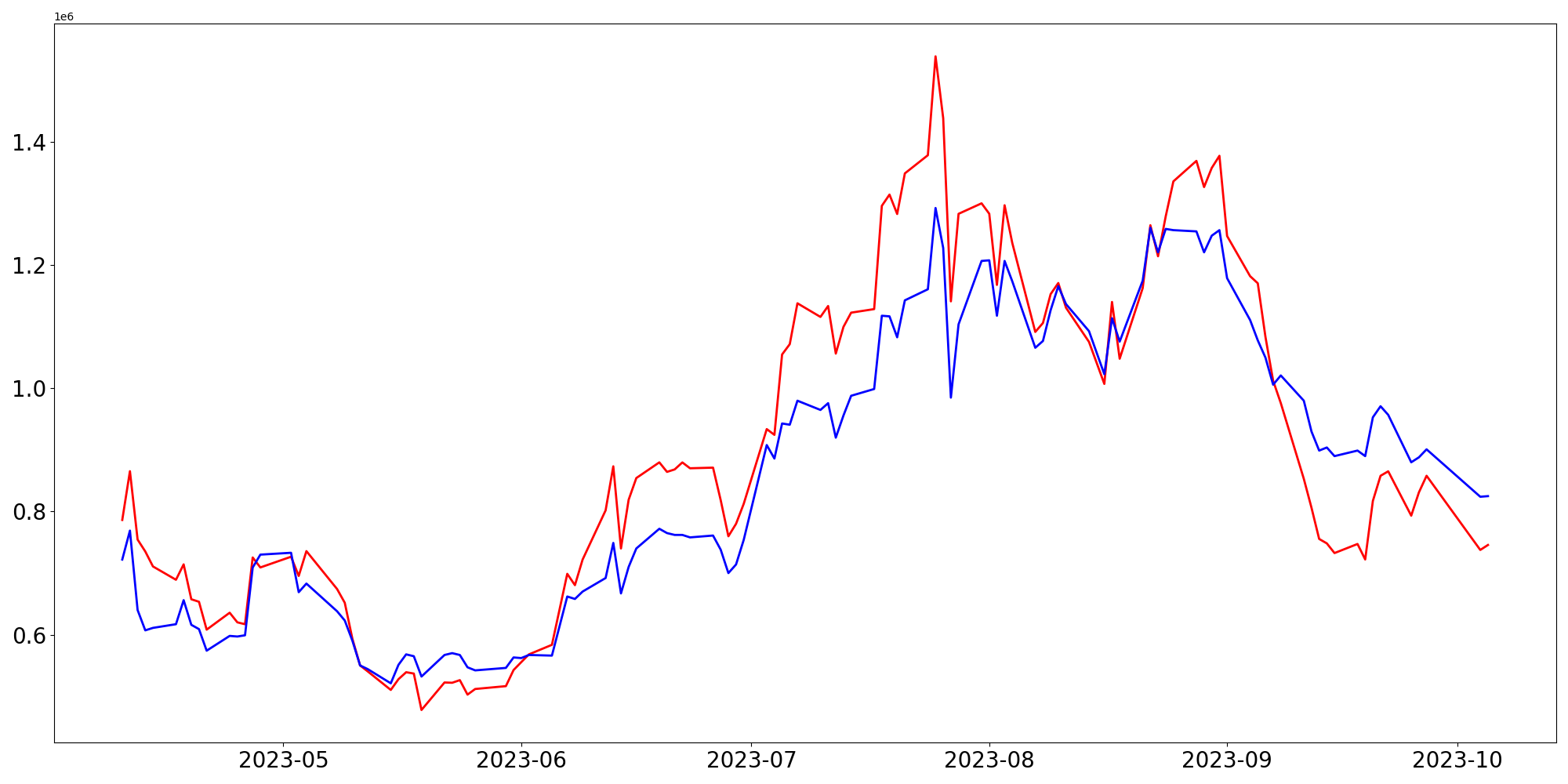 [ - : 실제값(종가) / - : 예측값(종가) ]