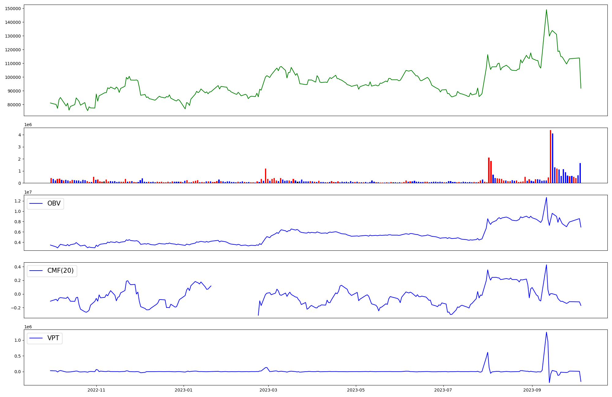 | OBV | CMF | VPT | |