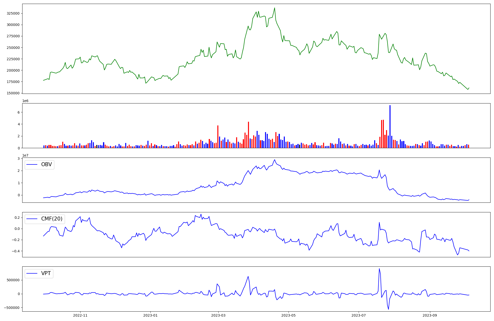| OBV | CMF | VPT | |