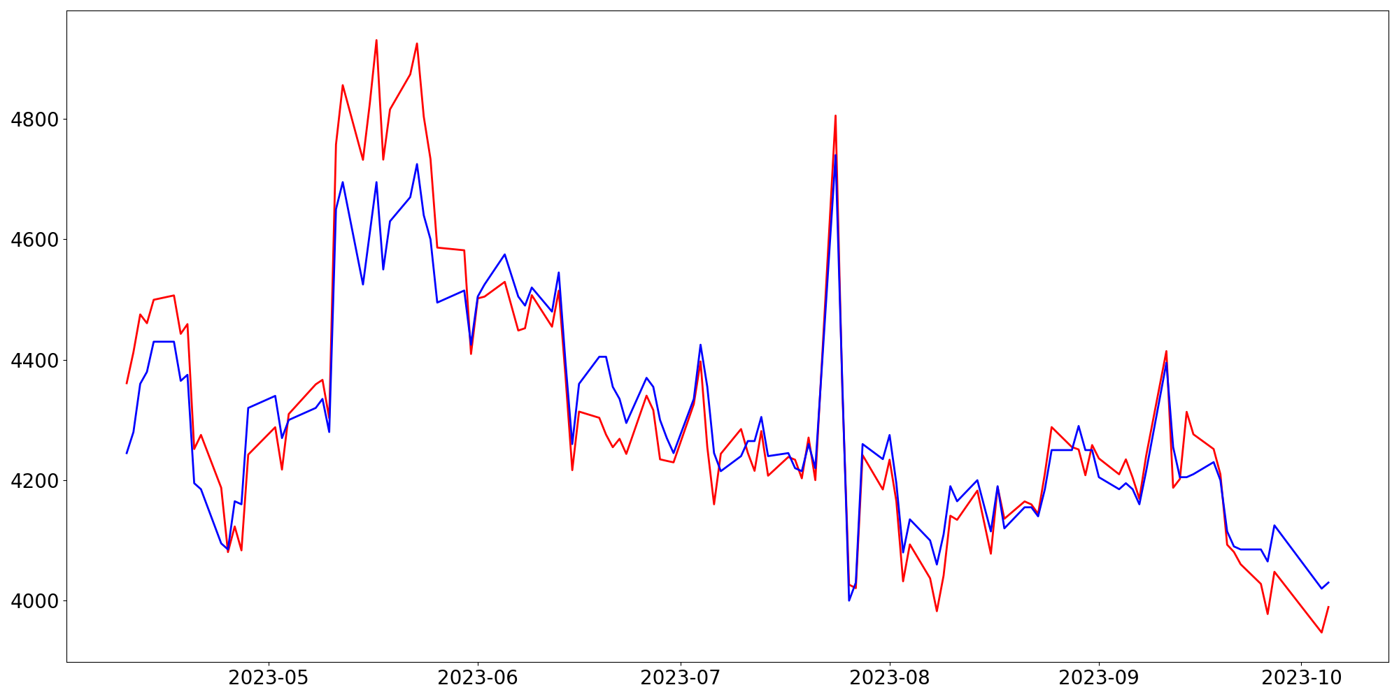 [ - : 실제값(종가) / - : 예측값(종가) ]