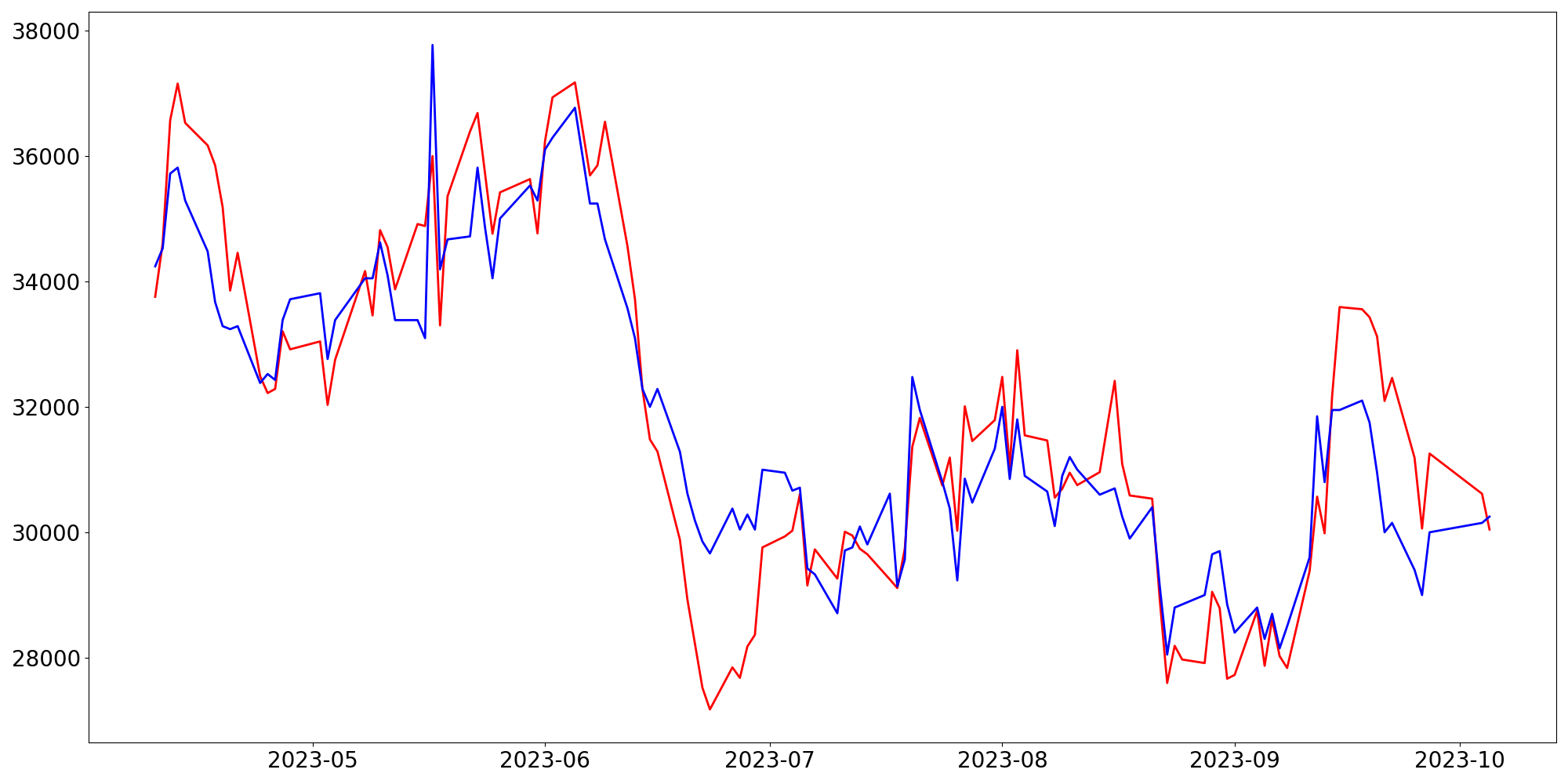 [ - : 실제값(종가) / - : 예측값(종가) ]