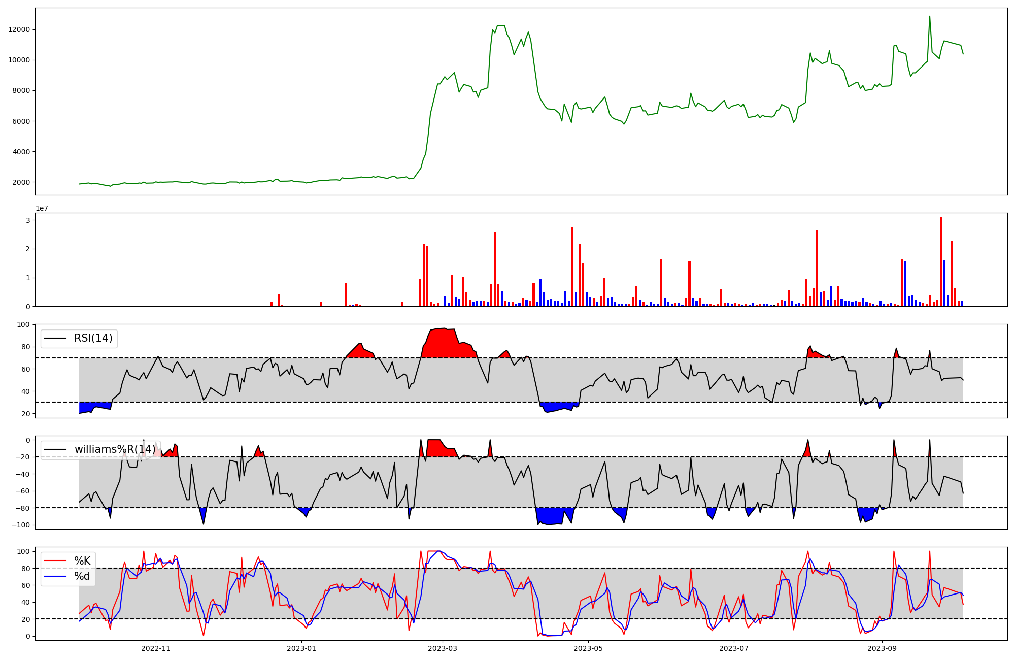 RSI | Williams %R | stochastic(%K) | |