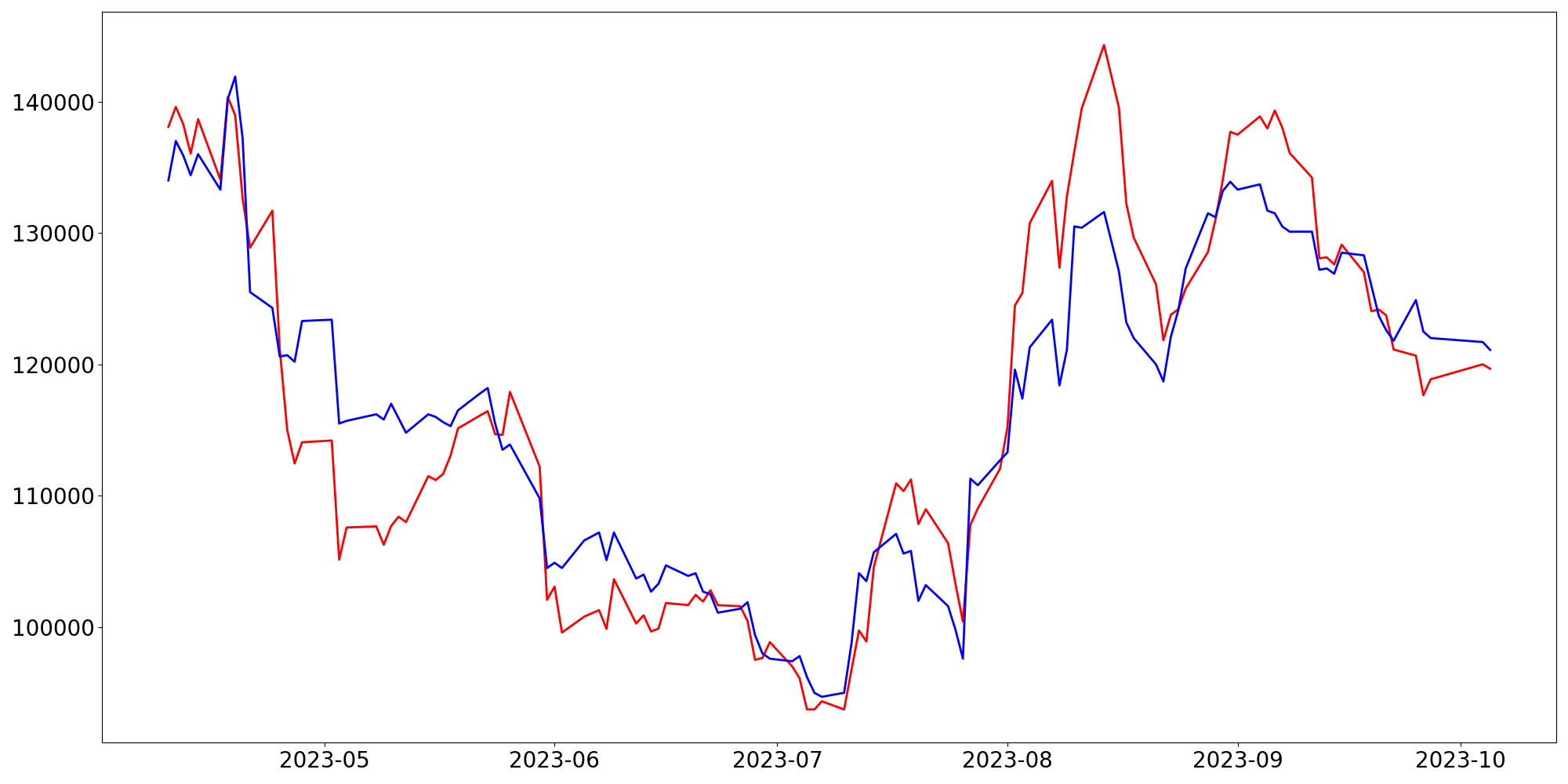 [ - : 실제값(종가) / - : 예측값(종가) ]