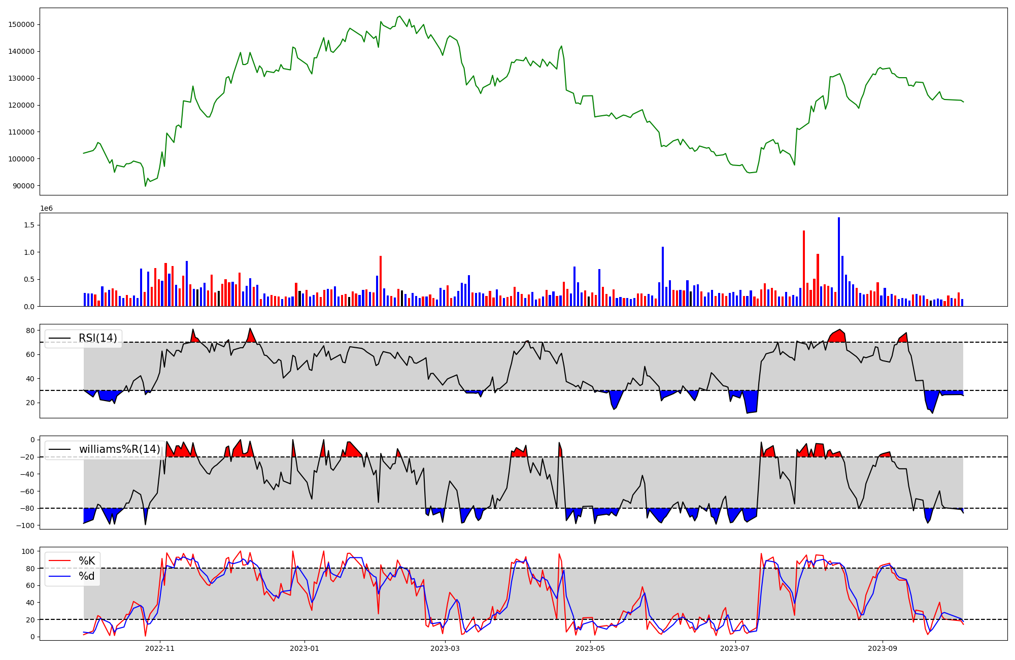 □ 중기 : 현재 종가가 중기(60일) 이동평균값(119,433원)을 상회 하여 중기적 추세 상승 중