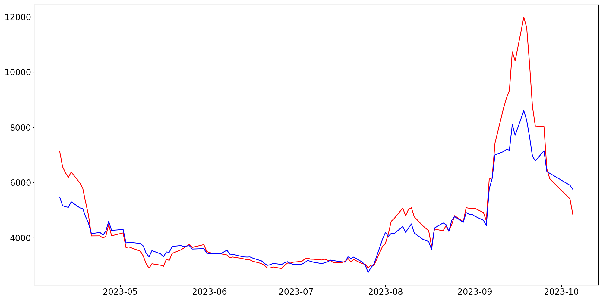 [ - : 실제값(종가) / - : 예측값(종가) ]