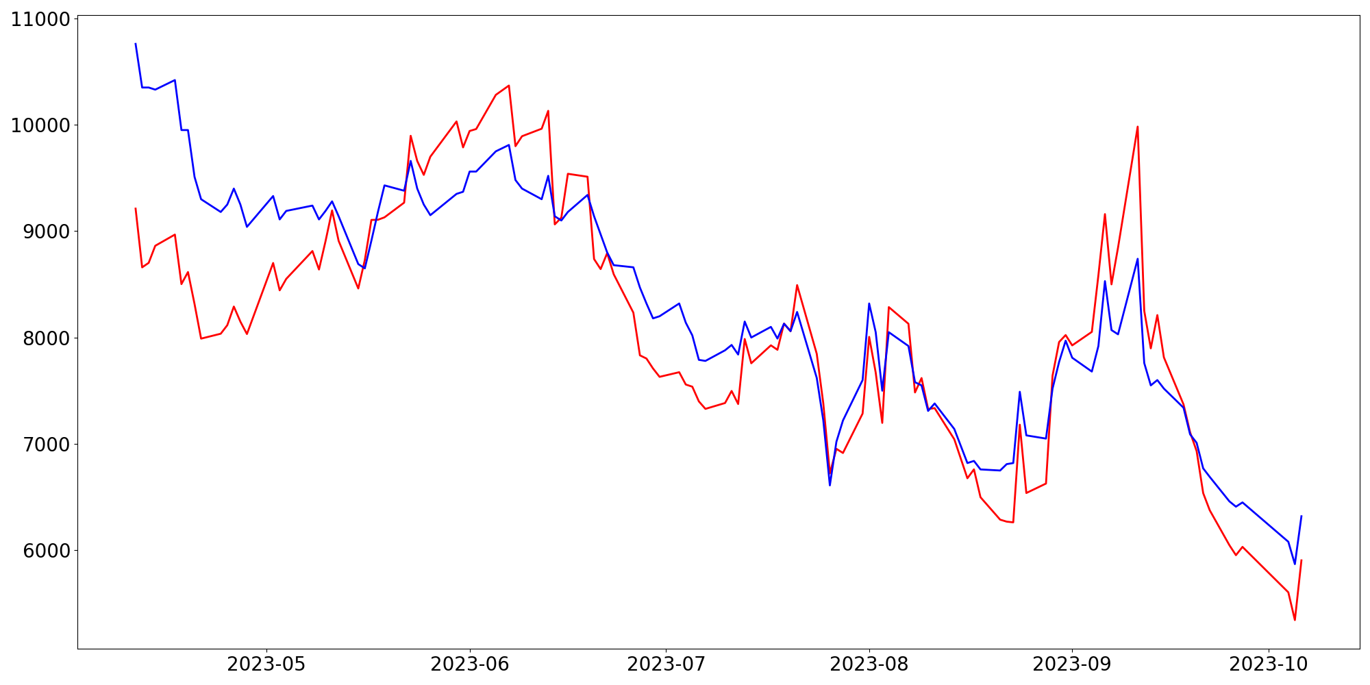 [ - : 실제값(종가) / - : 예측값(종가) ]
