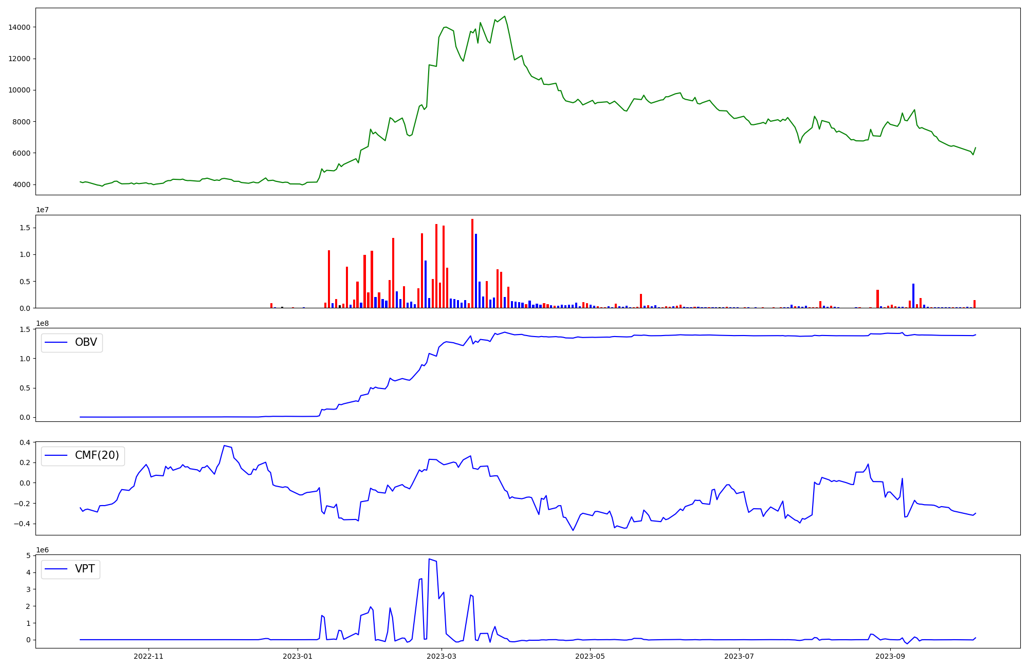 | OBV | CMF | VPT | |