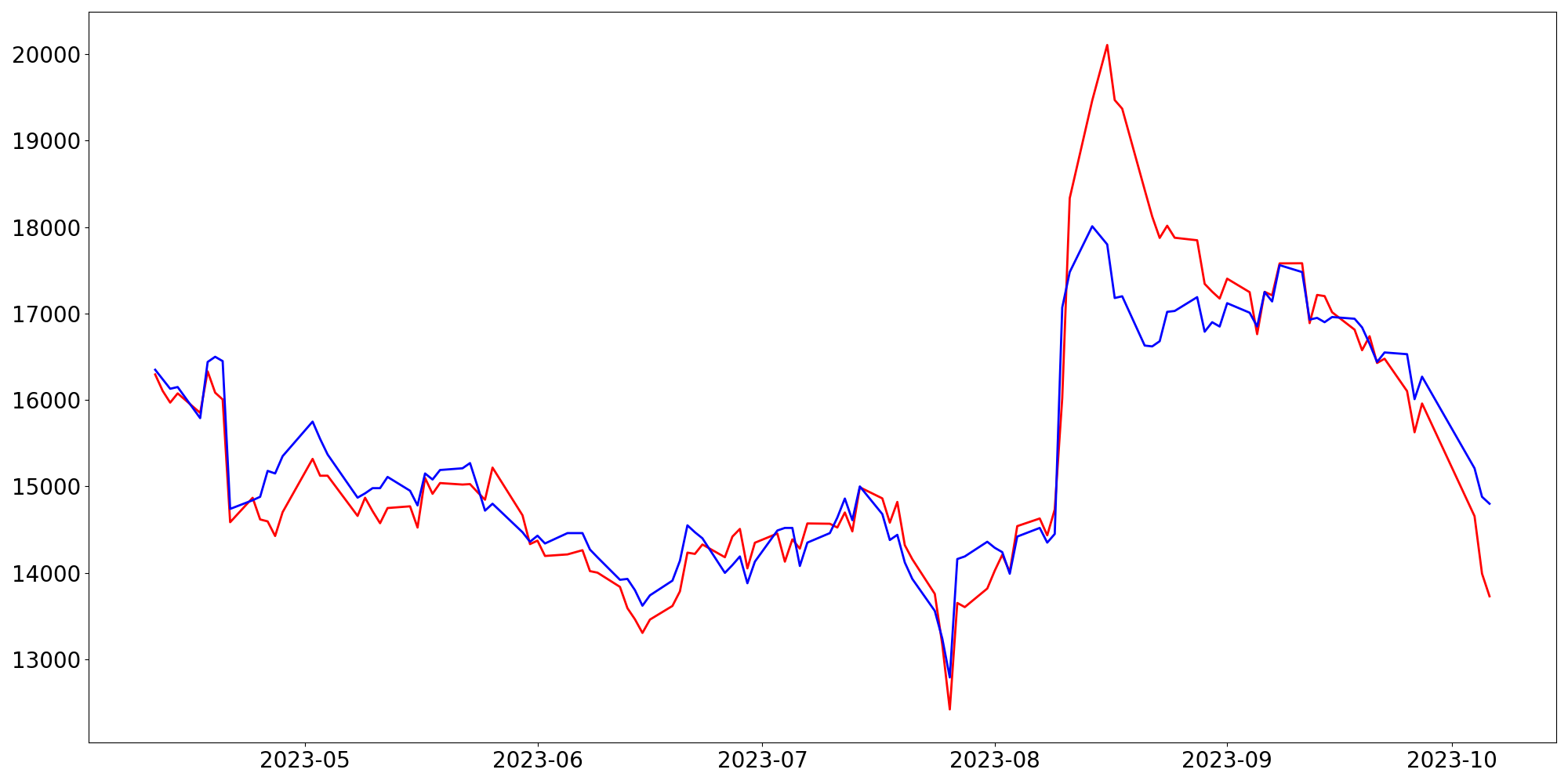 [ - : 실제값(종가) / - : 예측값(종가) ]