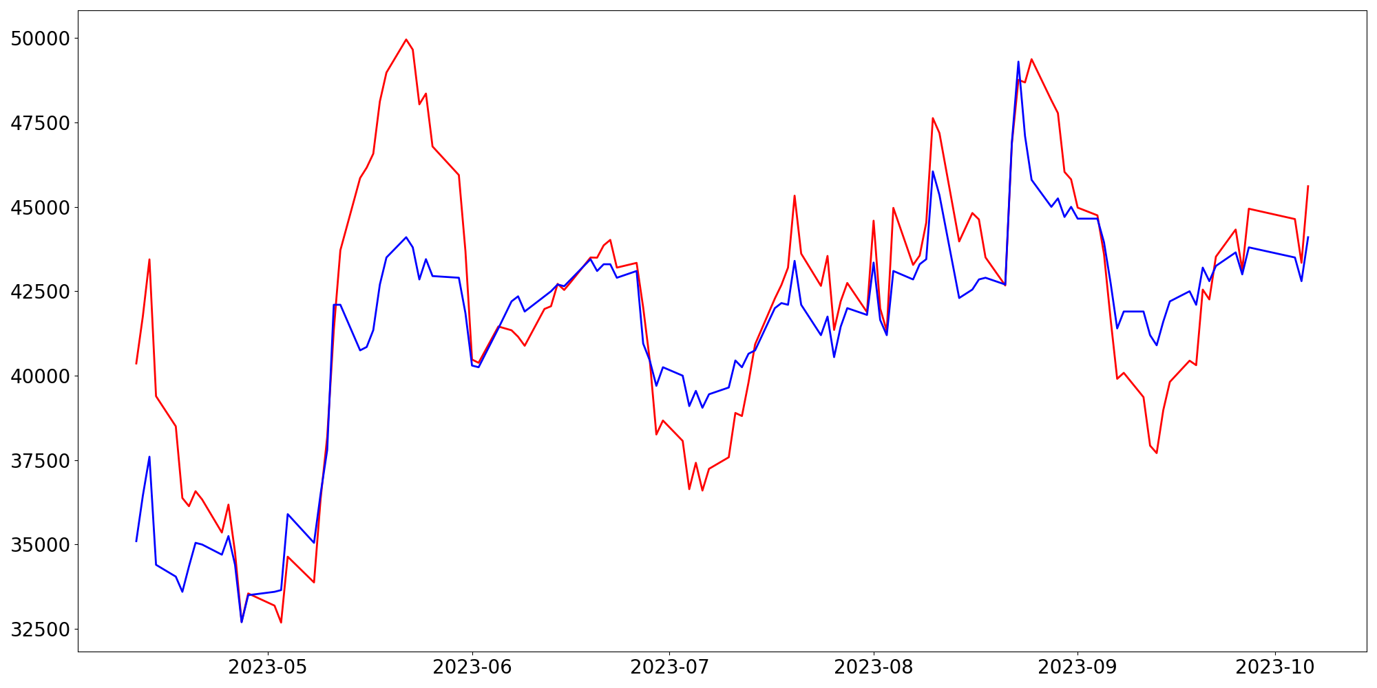 [ - : 실제값(종가) / - : 예측값(종가) ]