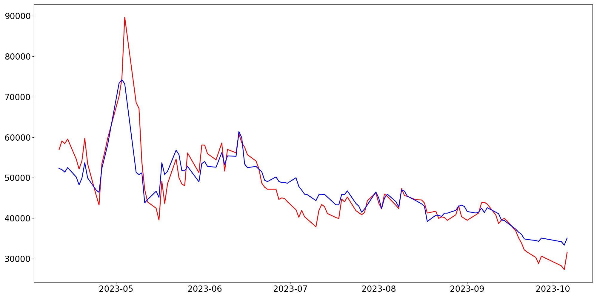 [ - : 실제값(종가) / - : 예측값(종가) ]