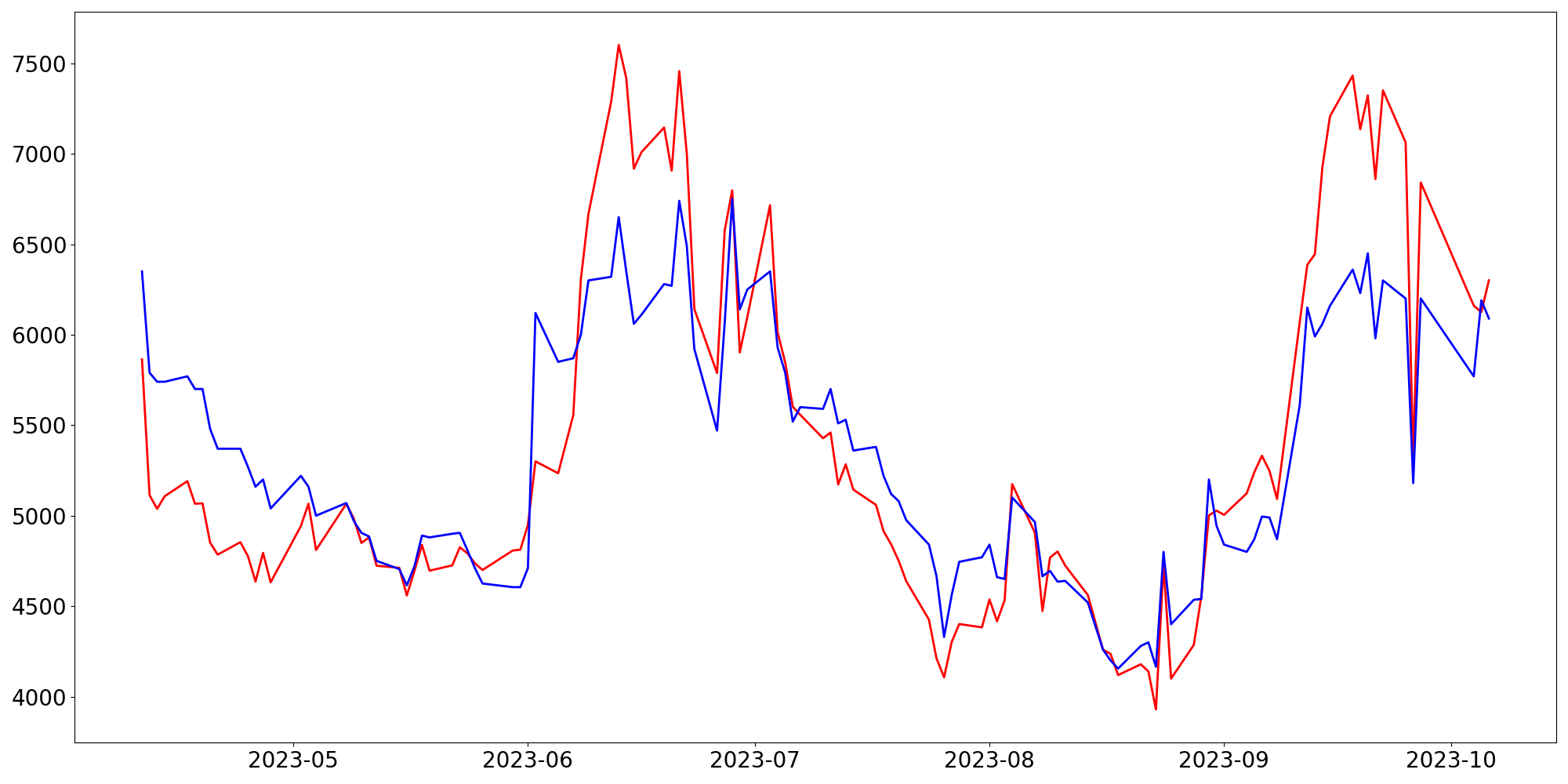 [ - : 실제값(종가) / - : 예측값(종가) ]