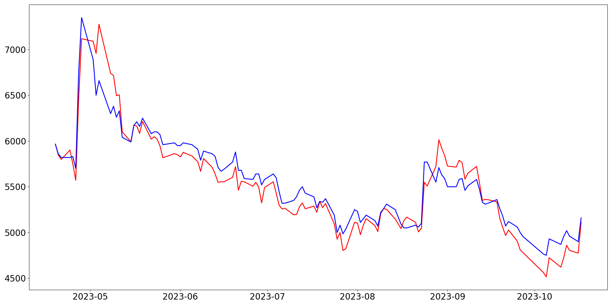 [ - : 실제값(종가) / - : 예측값(종가) ]