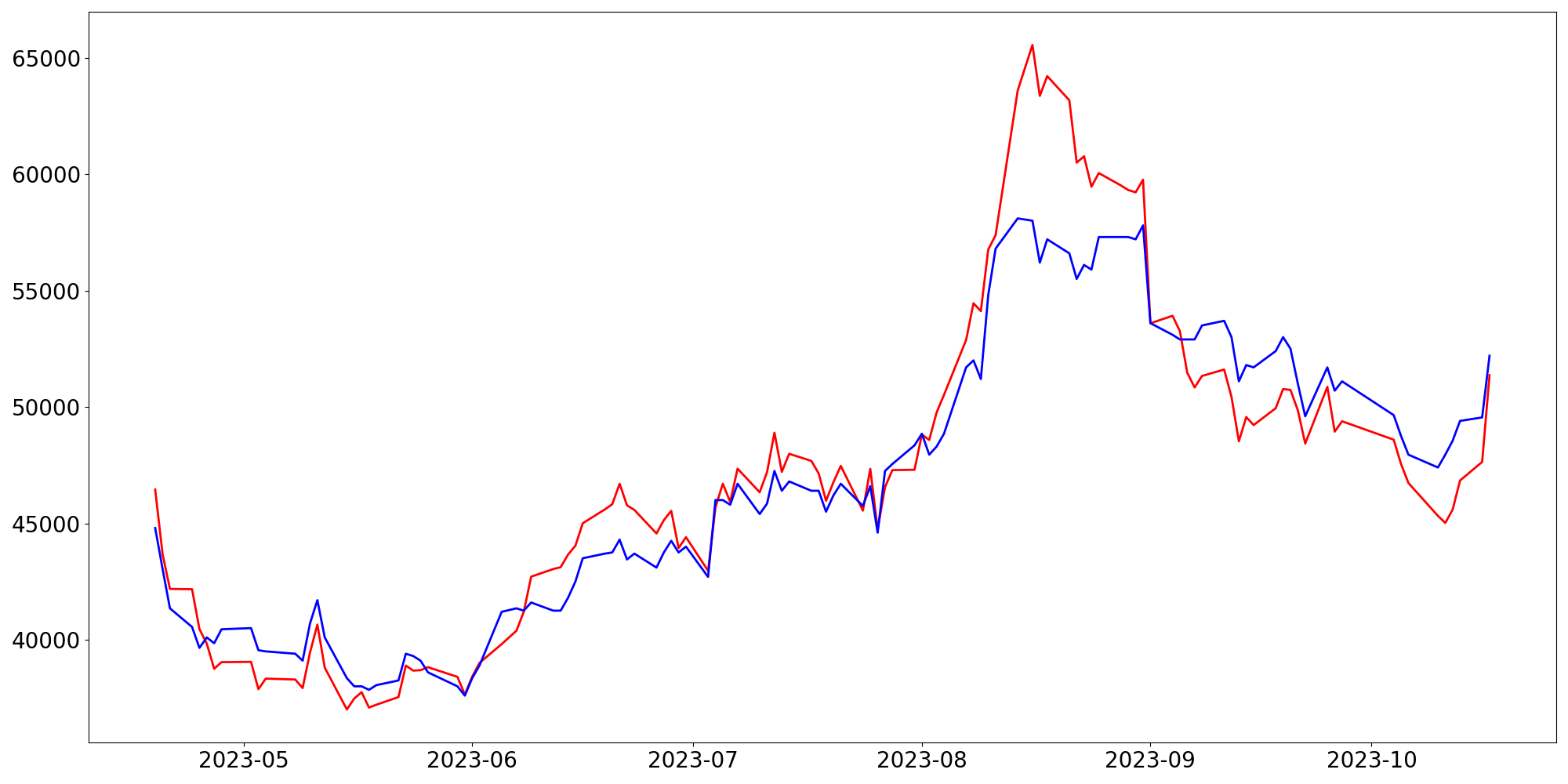 [ - : 실제값(종가) / - : 예측값(종가) ]