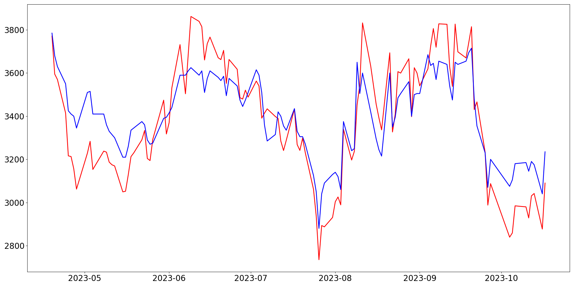 [ - : 실제값(종가) / - : 예측값(종가) ]