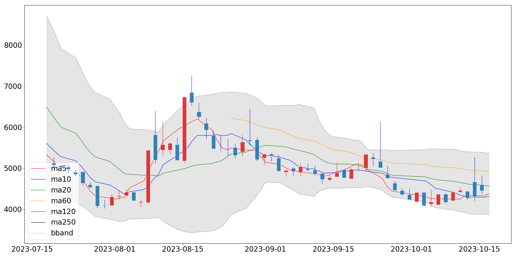 □ 장기 : 현재 종가가 장기(250일) 이동평균값(nan원)을 상회 하여 장기적 추세 상승 중