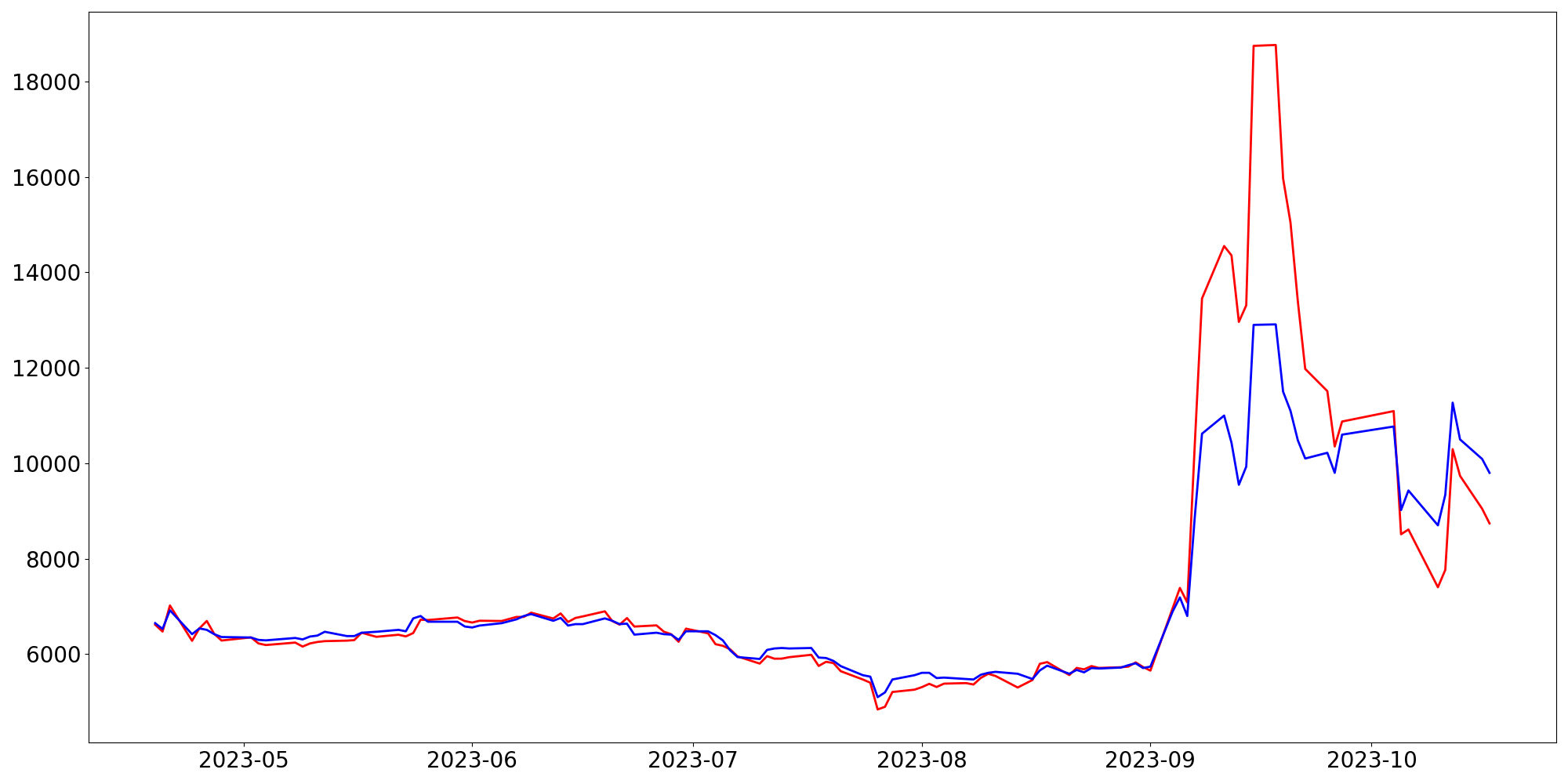 [ - : 실제값(종가) / - : 예측값(종가) ]