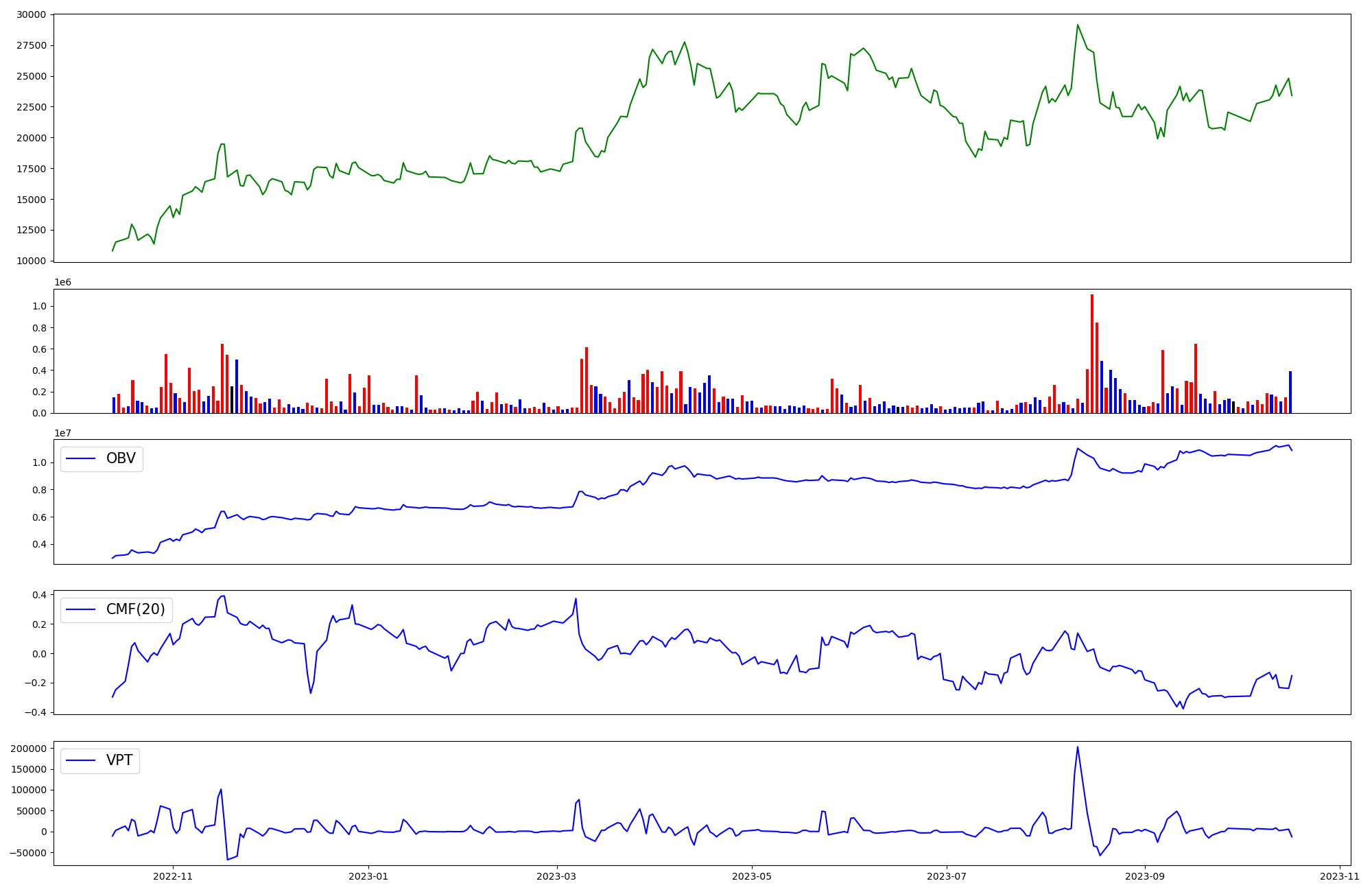 | OBV | CMF | VPT | |