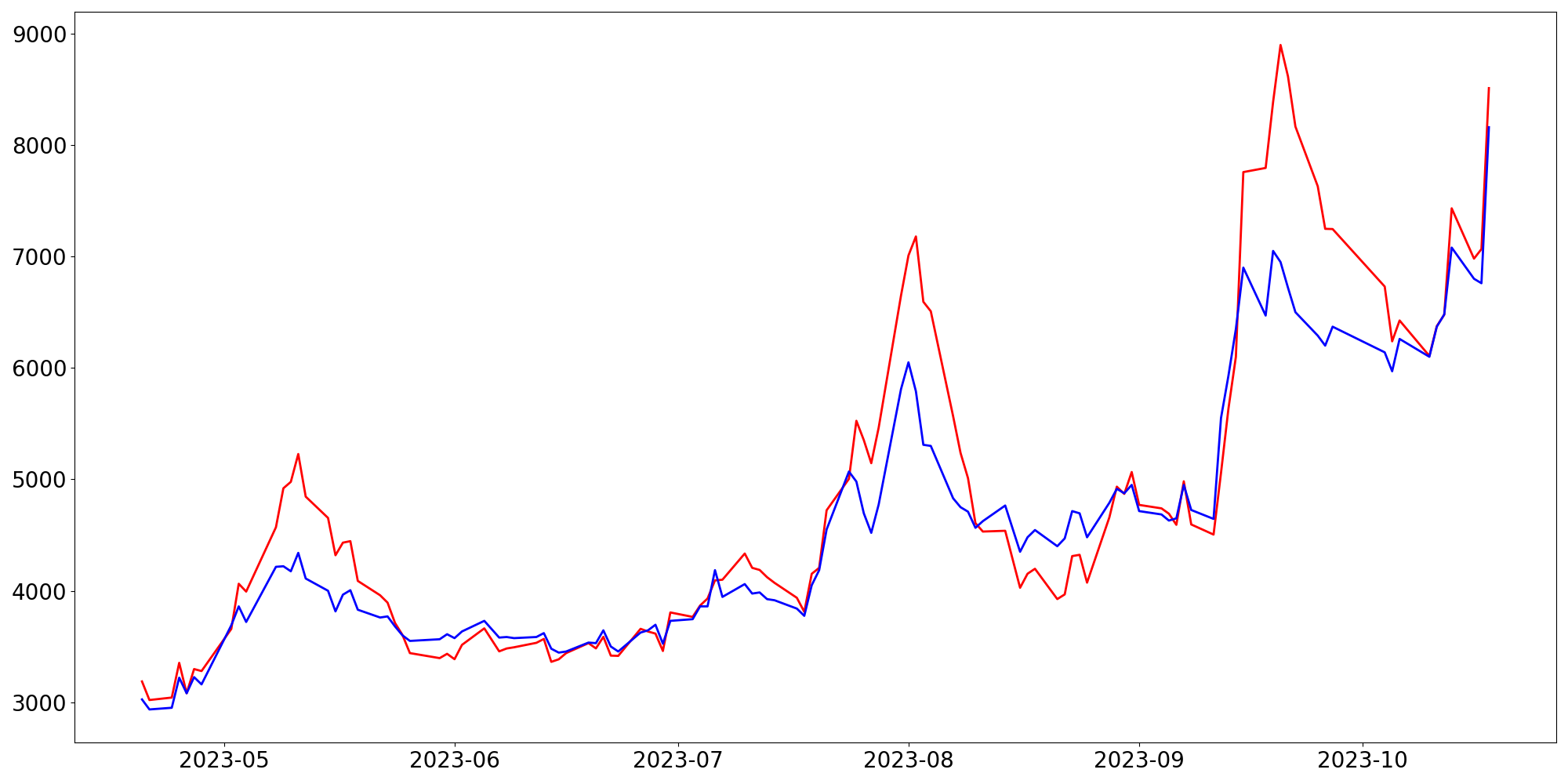 [ - : 실제값(종가) / - : 예측값(종가) ]