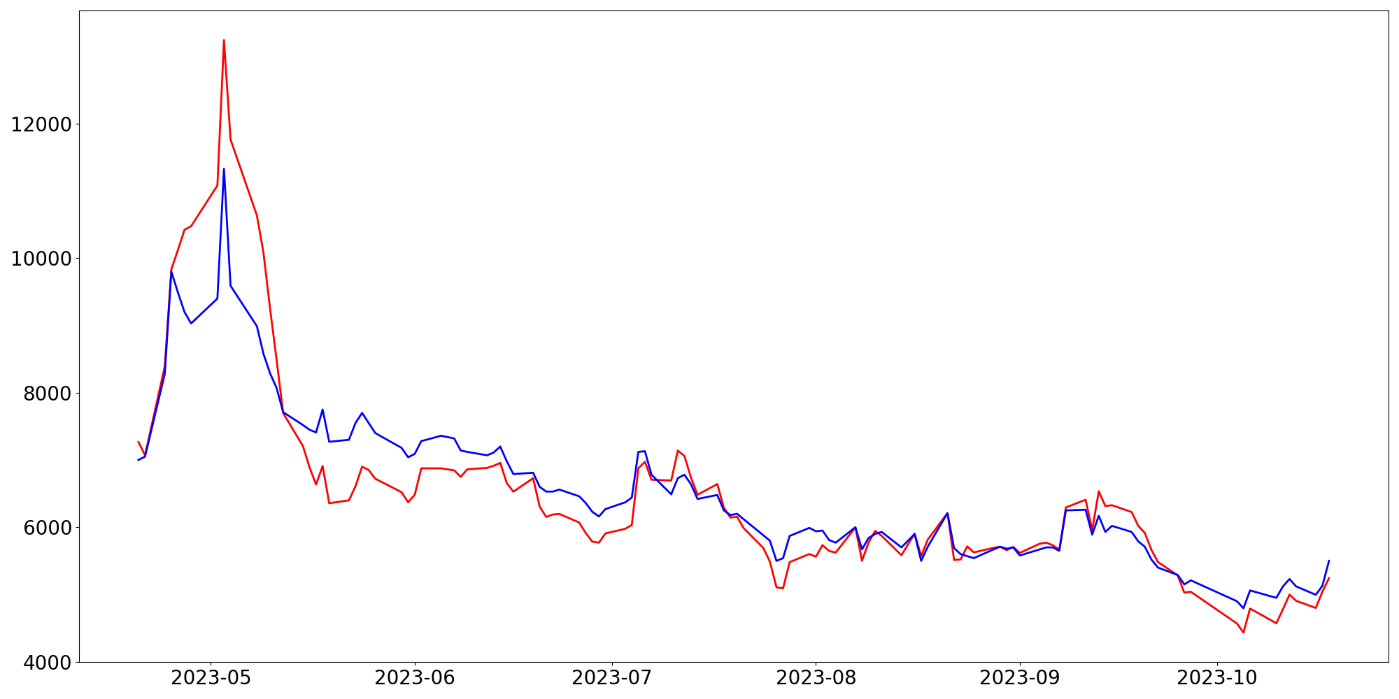 [ - : 실제값(종가) / - : 예측값(종가) ]