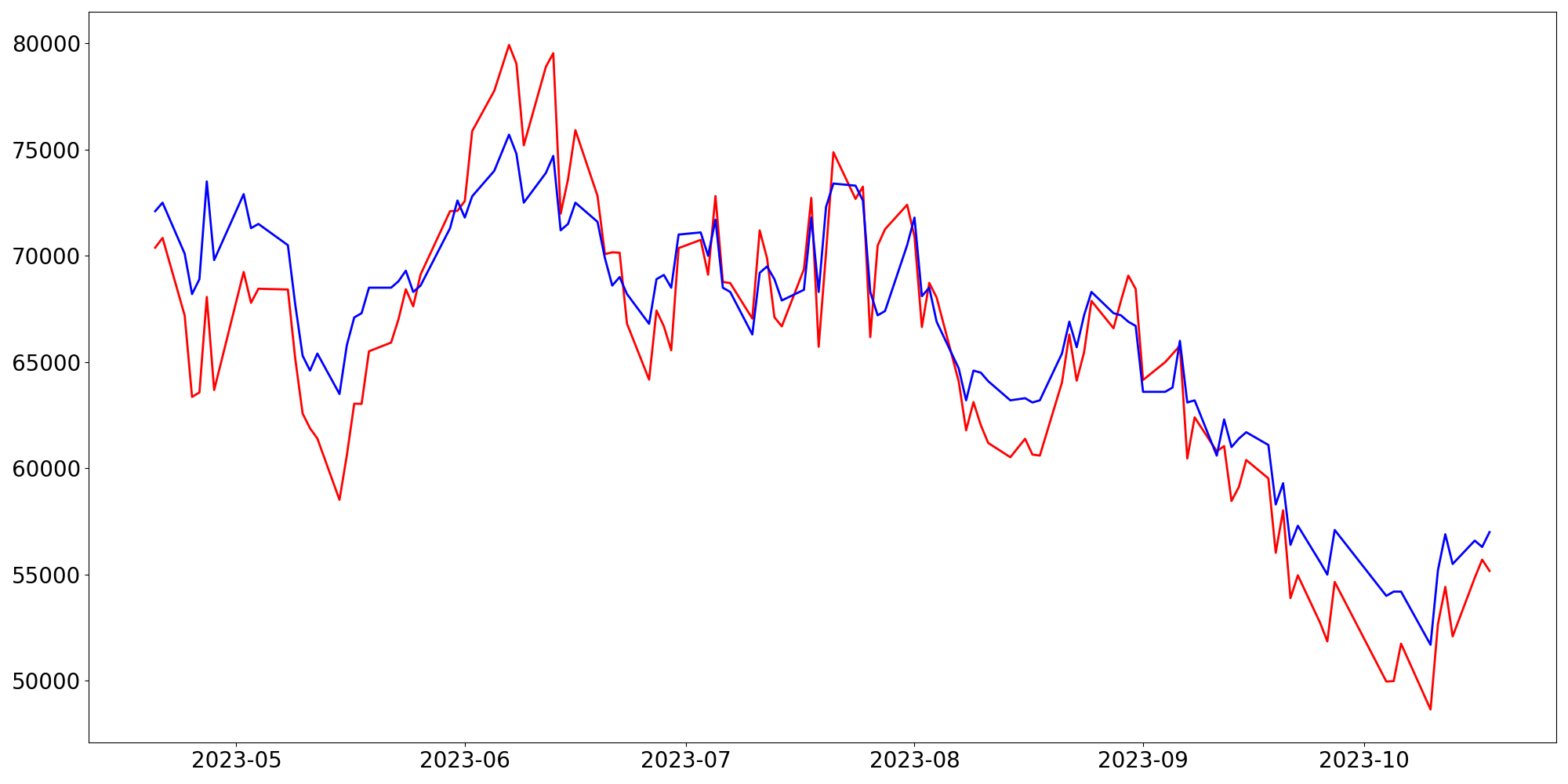 [ - : 실제값(종가) / - : 예측값(종가) ]