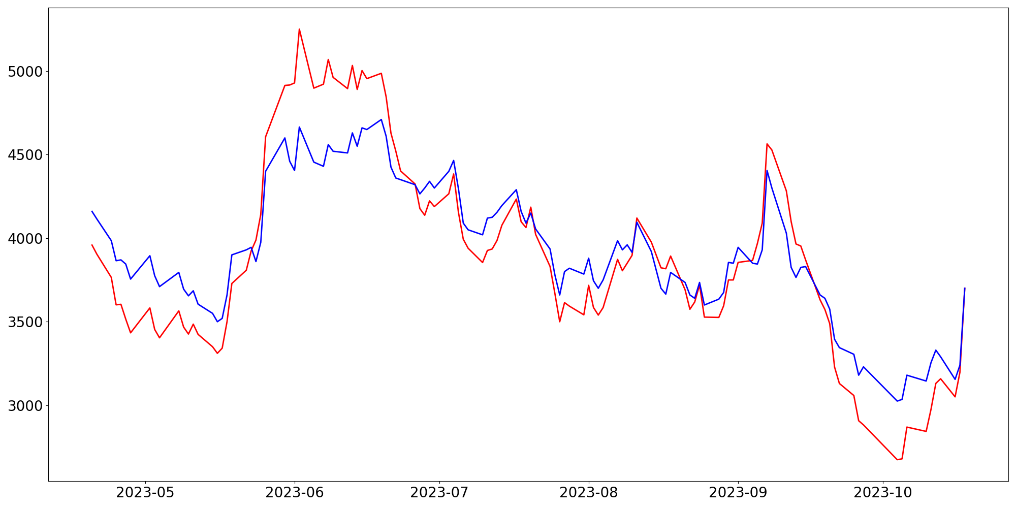 [ - : 실제값(종가) / - : 예측값(종가) ]