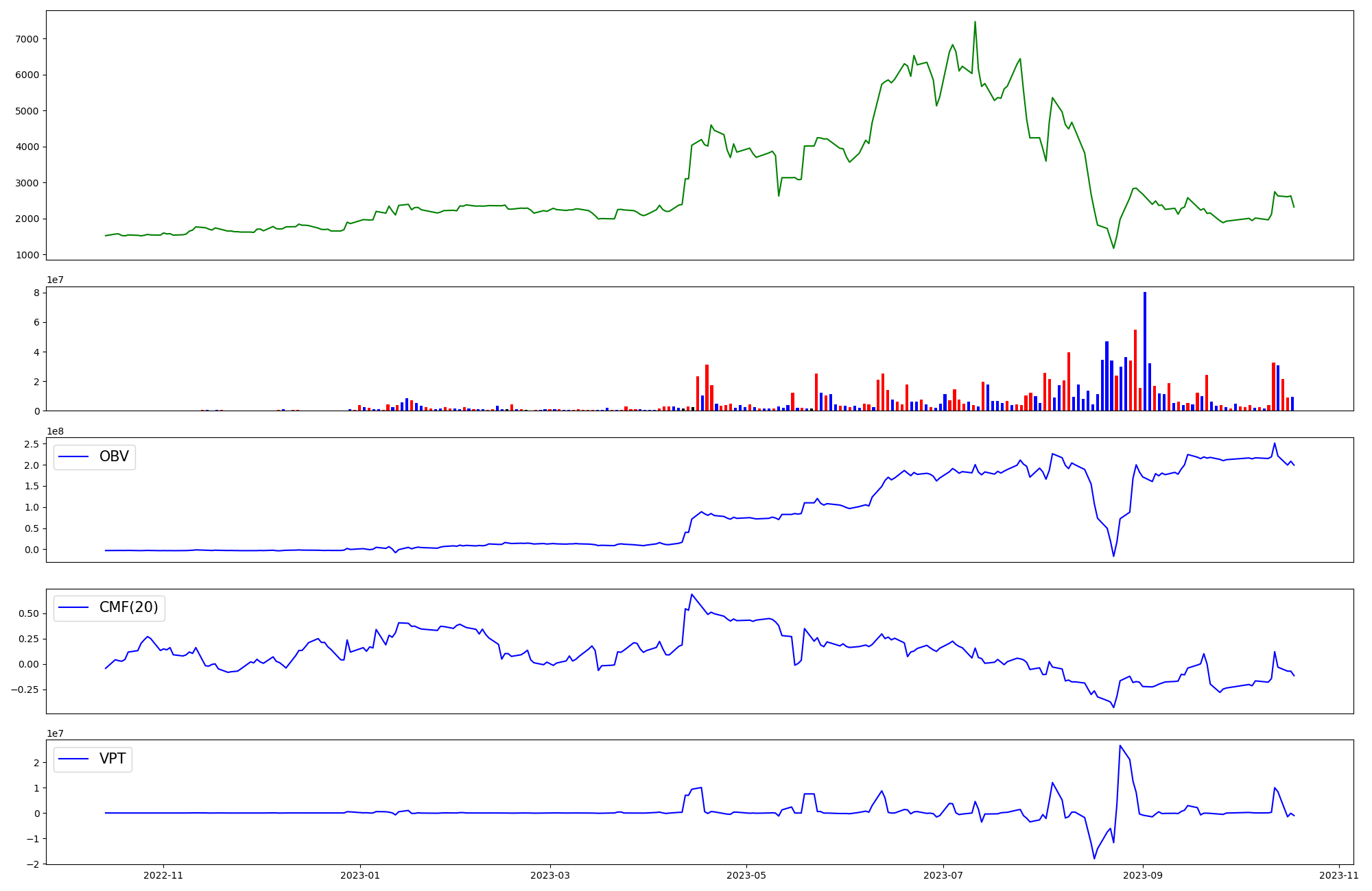 | OBV | CMF | VPT | |