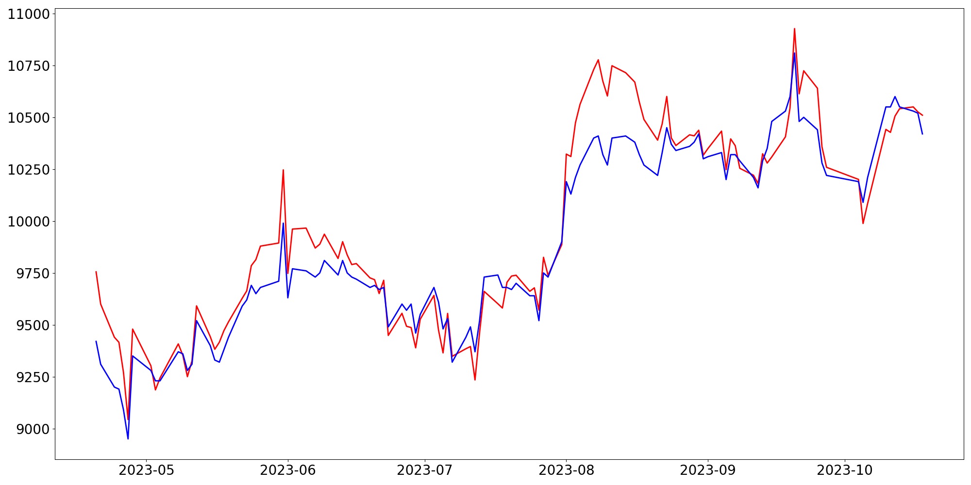 [ - : 실제값(종가) / - : 예측값(종가) ]