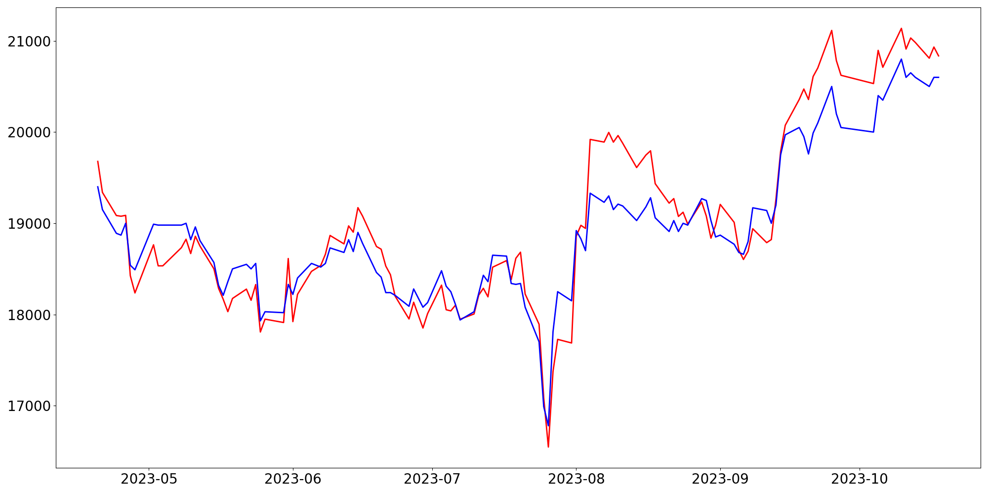 [ - : 실제값(종가) / - : 예측값(종가) ]