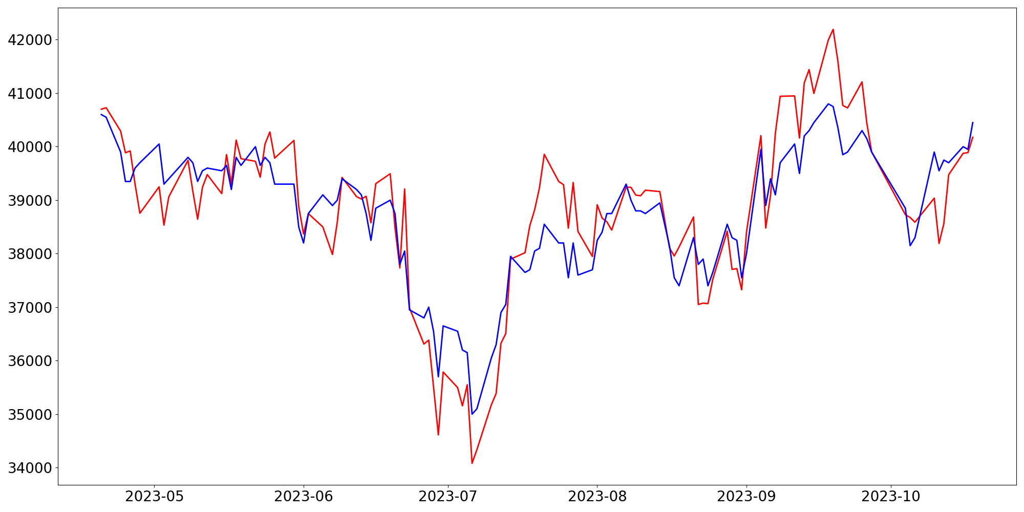 [ - : 실제값(종가) / - : 예측값(종가) ]