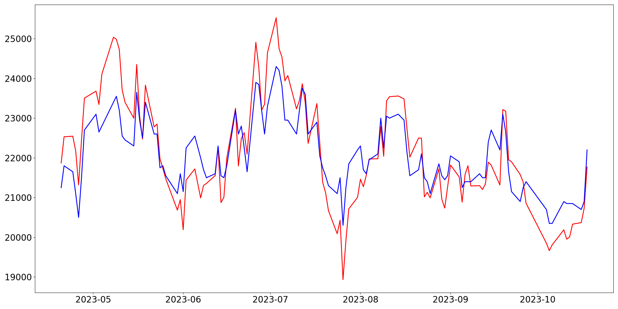 [ - : 실제값(종가) / - : 예측값(종가) ]
