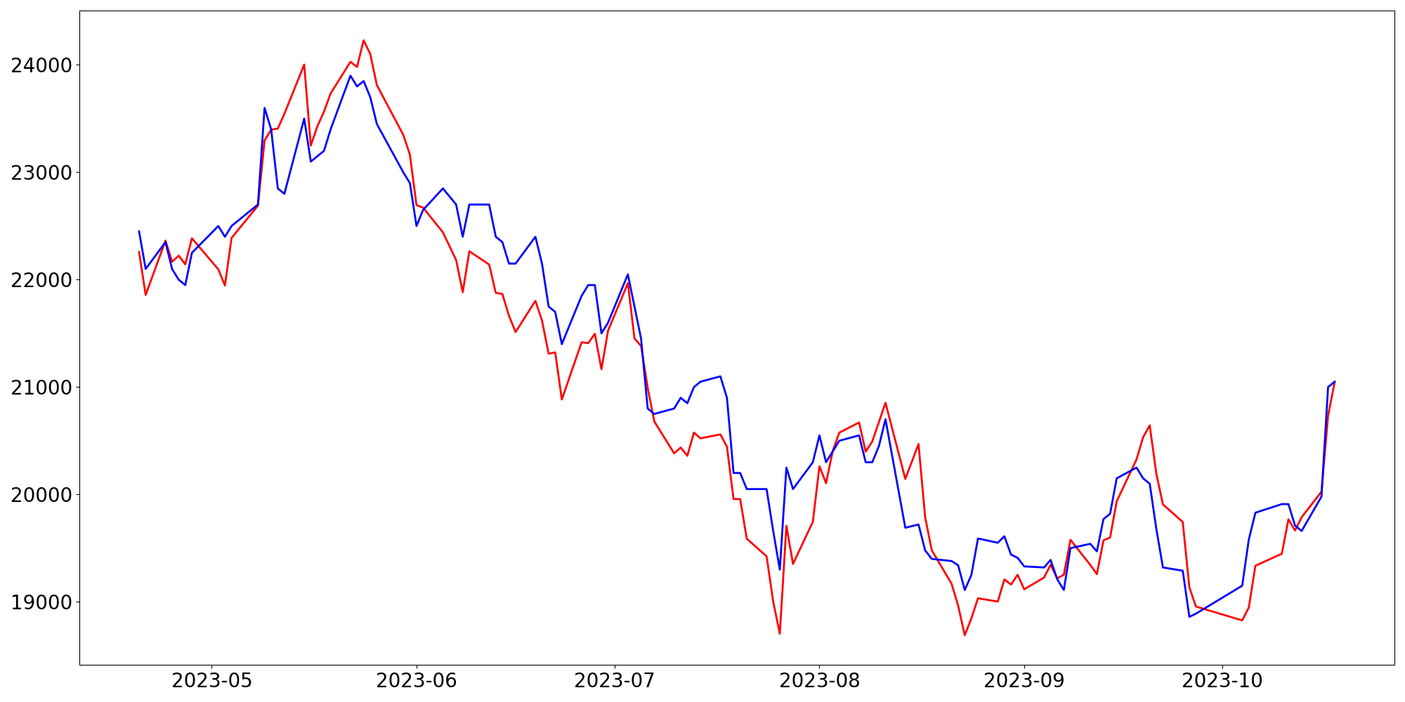[ - : 실제값(종가) / - : 예측값(종가) ]