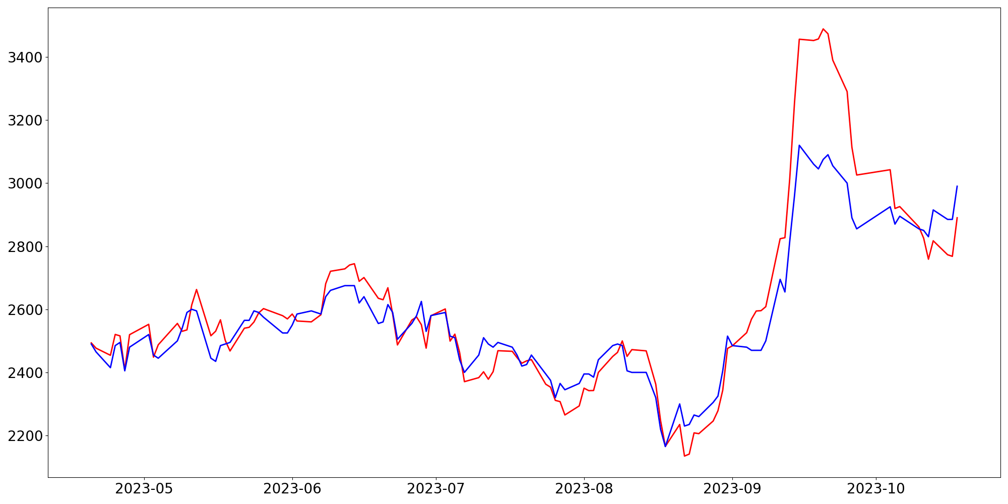 [ - : 실제값(종가) / - : 예측값(종가) ]