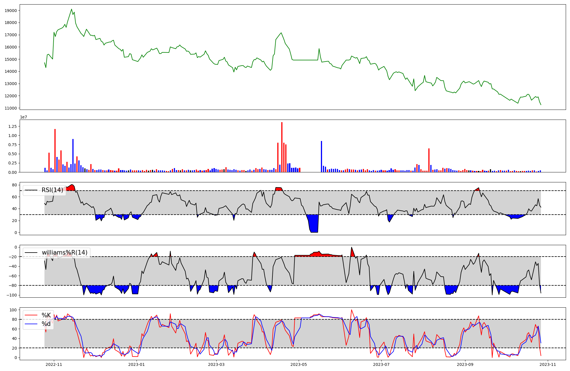 □ 장기 : 현재 종가가 장기(250일) 이동평균값(14,661원)을 하회 하여 장기적 추세 하락 중