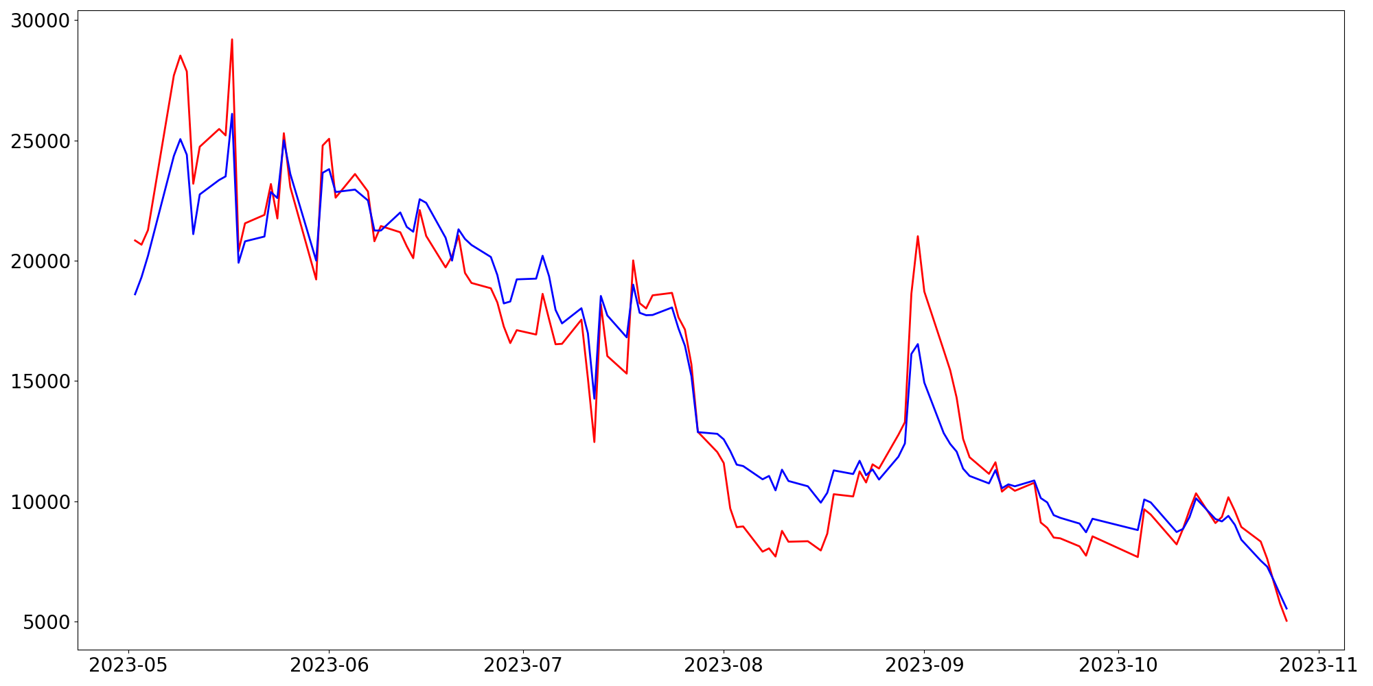 [ - : 실제값(종가) / - : 예측값(종가) ]