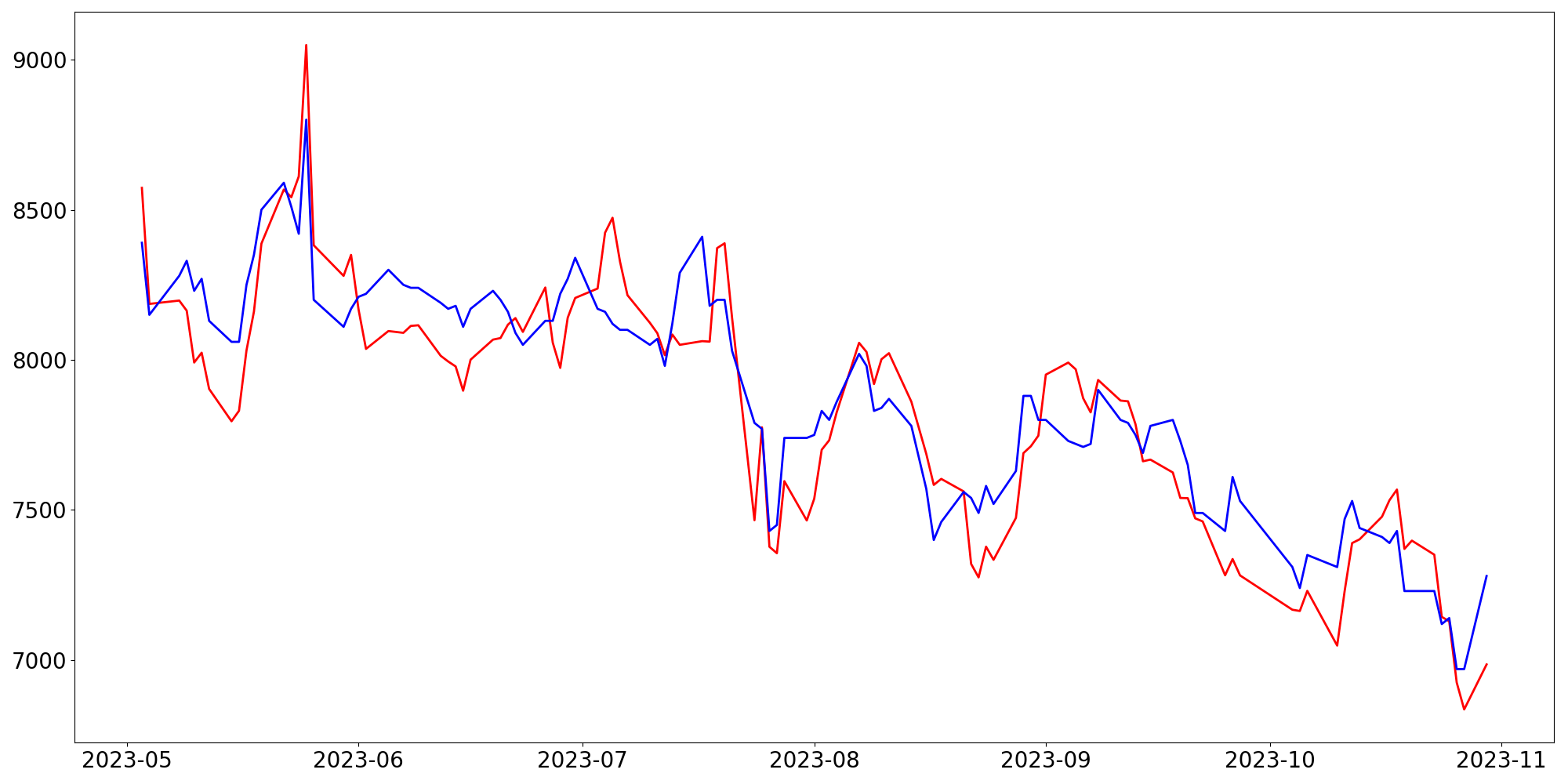 [ - : 실제값(종가) / - : 예측값(종가) ]