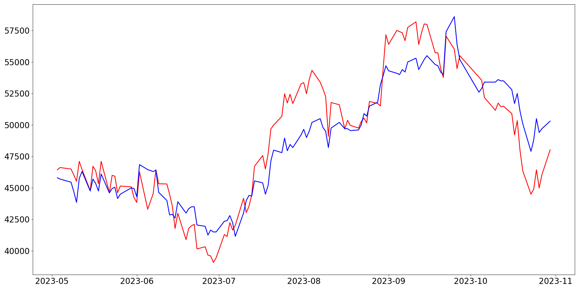 [ - : 실제값(종가) / - : 예측값(종가) ]
